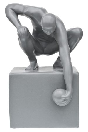 A fabulous yet unusual bathing lady sculpture made from a grey resin mold with a mirrored silver base. The female figure has a shiny matt finish and seems to be posed with a shocked expression with a shielding hand gesture, the base has a mirror reflection giving the decoration the desired water effect. Also available in black with a gold base or cream with a gold base. Height : 22cm, Width : 51cm, Depth : 34cm- Resin grey figure
