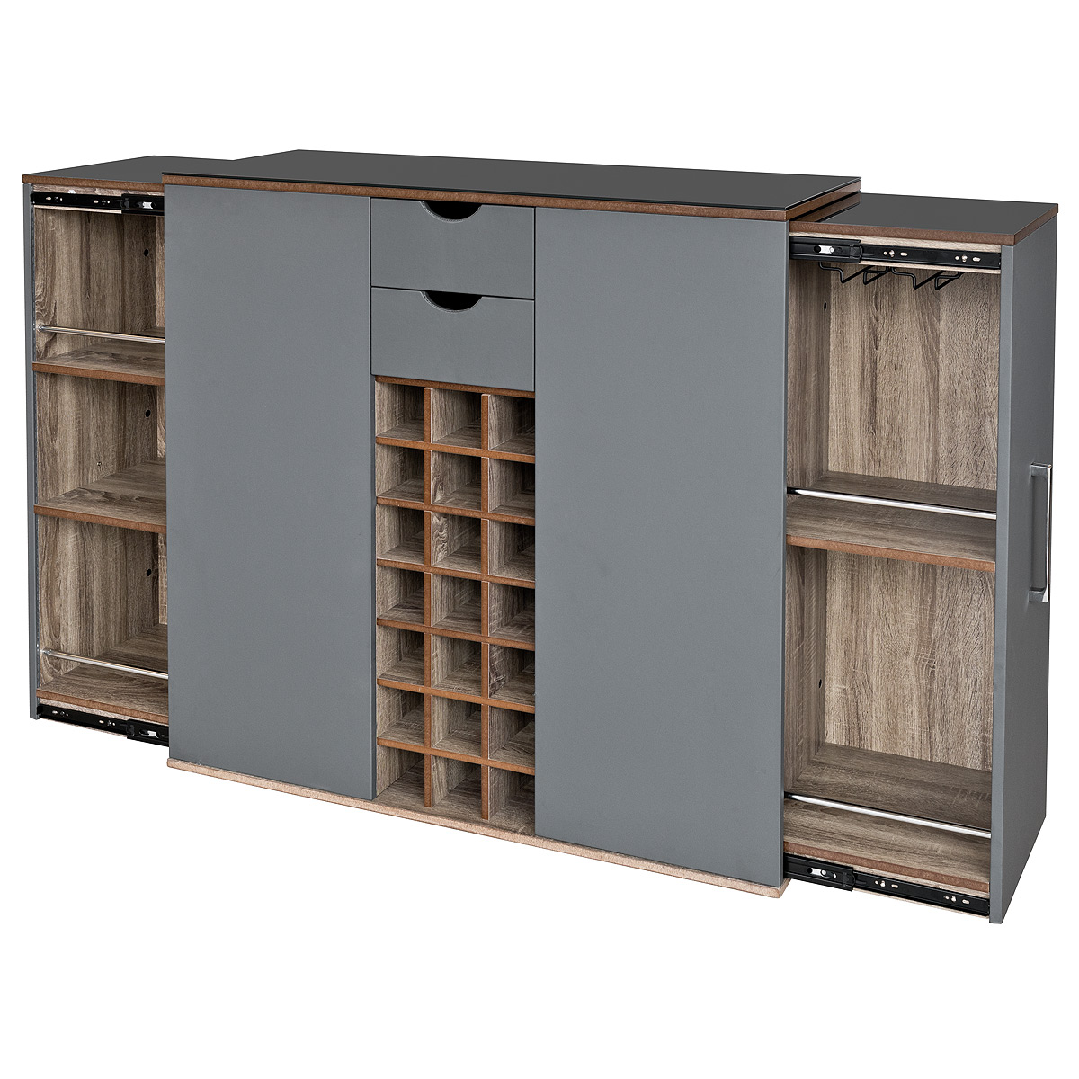 The Alabama Extending Breakfast Bar has two extending pull out side panels, great for storage if you want to save space in your home bar.