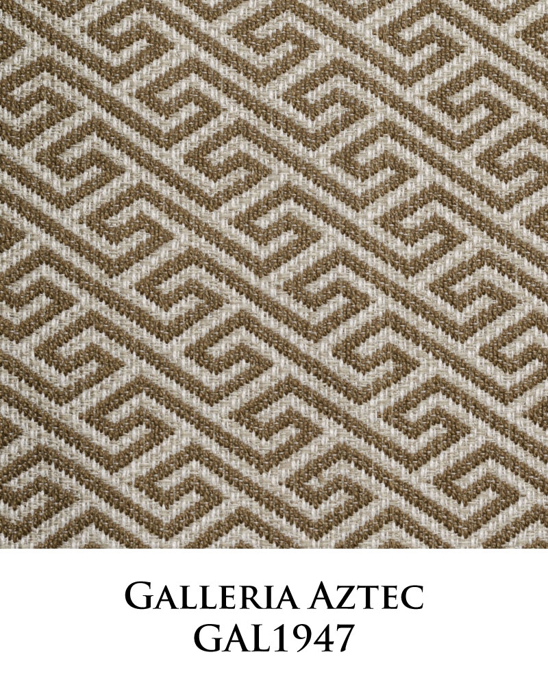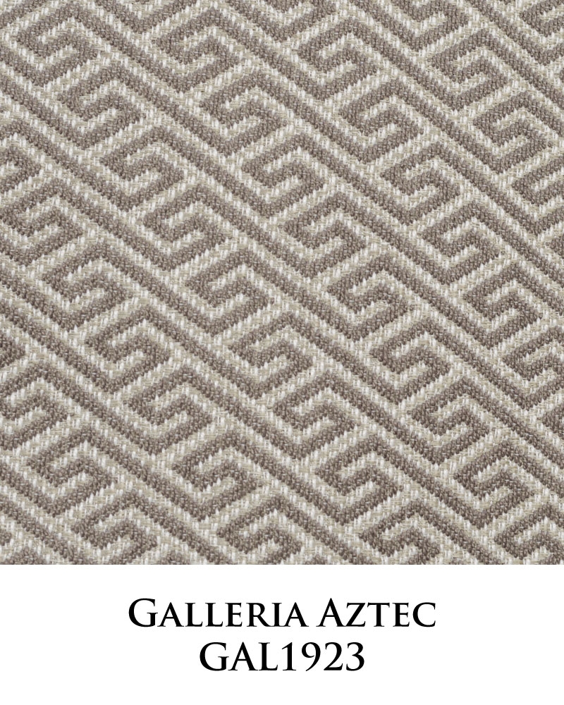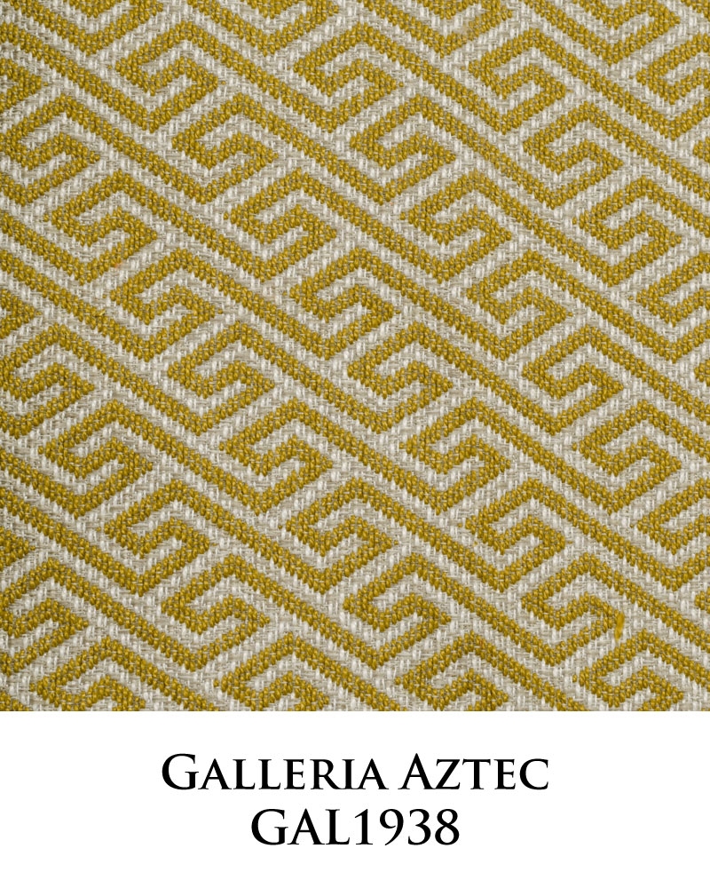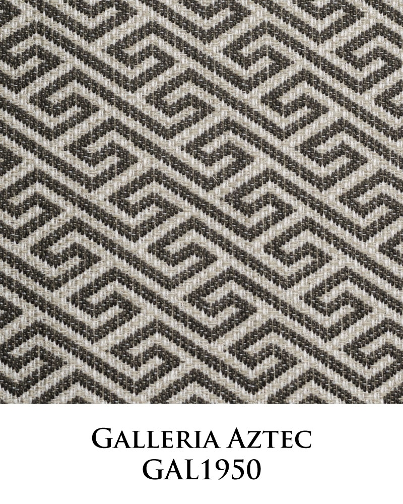 The Galleria Aztec fabric collection. One of our in-house fabric swatches that can be applied to our bespoke furniture items.