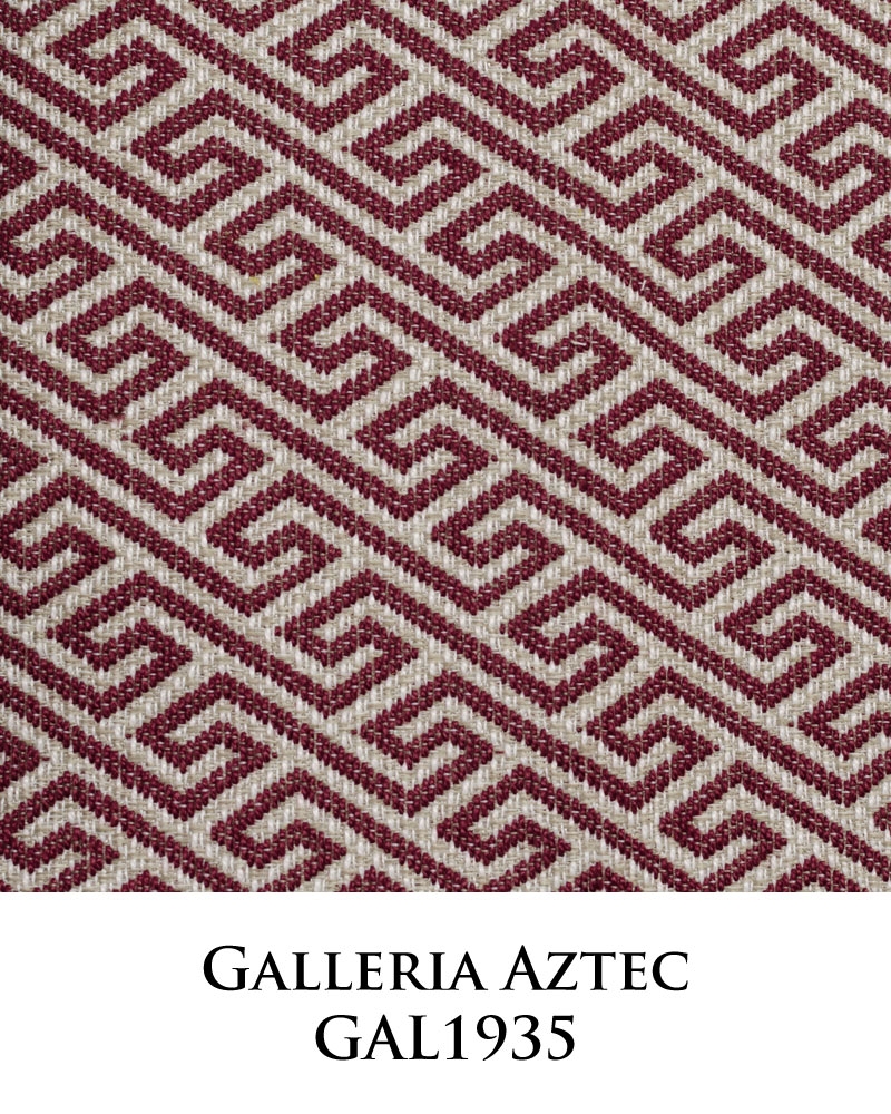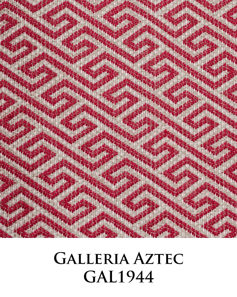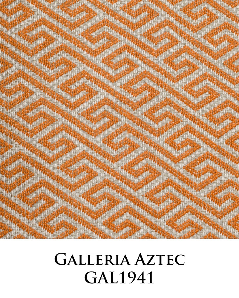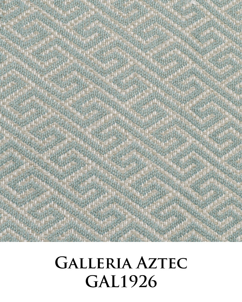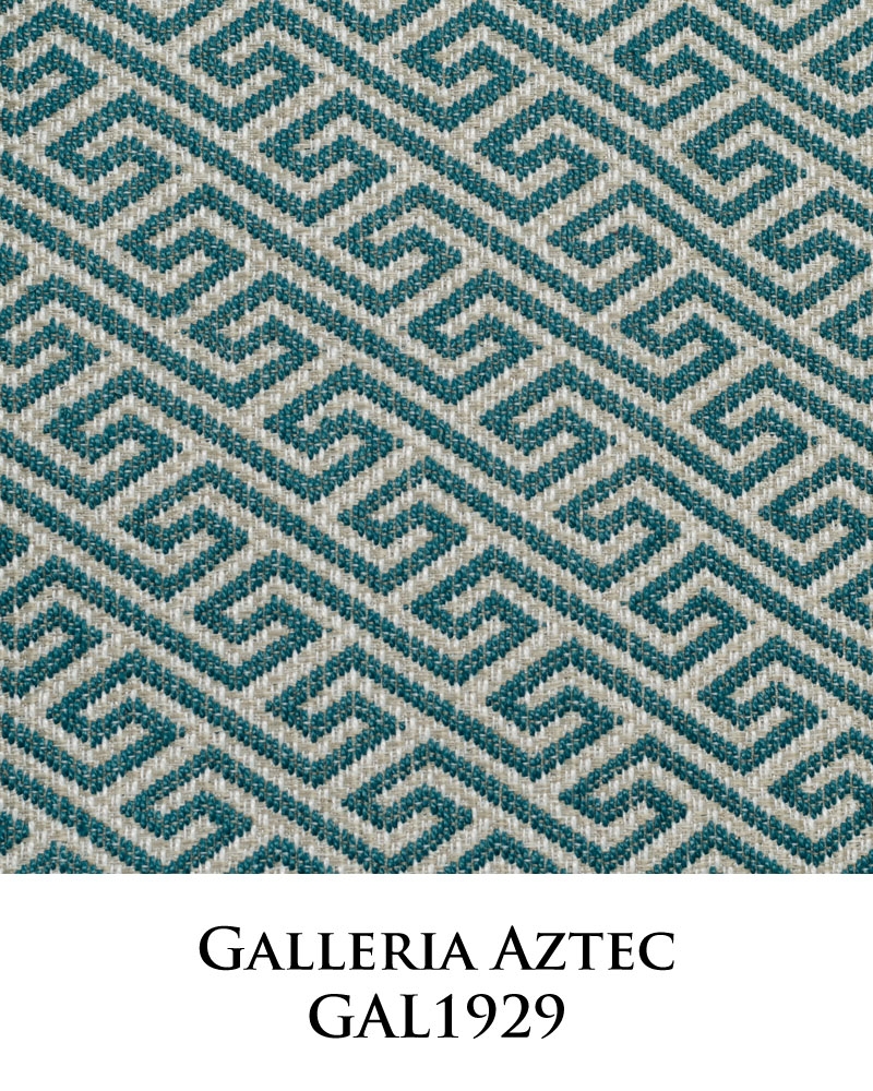 The Galleria Aztec fabric collection. One of our in-house fabric swatches that can be applied to our bespoke furniture items.