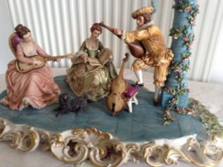 A detailed capodimonte porcelain figurine of a Period Lady at the Piano with a Period Gentleman on the Violin by G.Pellati