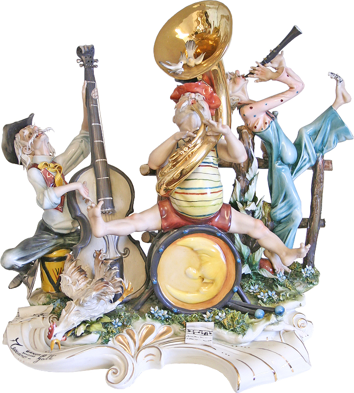 Original Capo-di-monte porcelain, crafted by the Italian master sculptors. All the figurines and fine ceramics shown are original and authentic. Be careful of imitations.