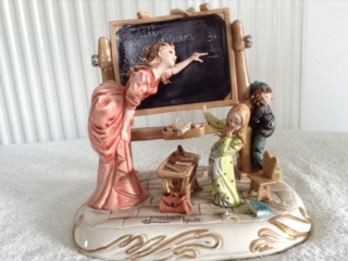 A detailed capodimonte porcelain figurine of a school class room with teacher and students.