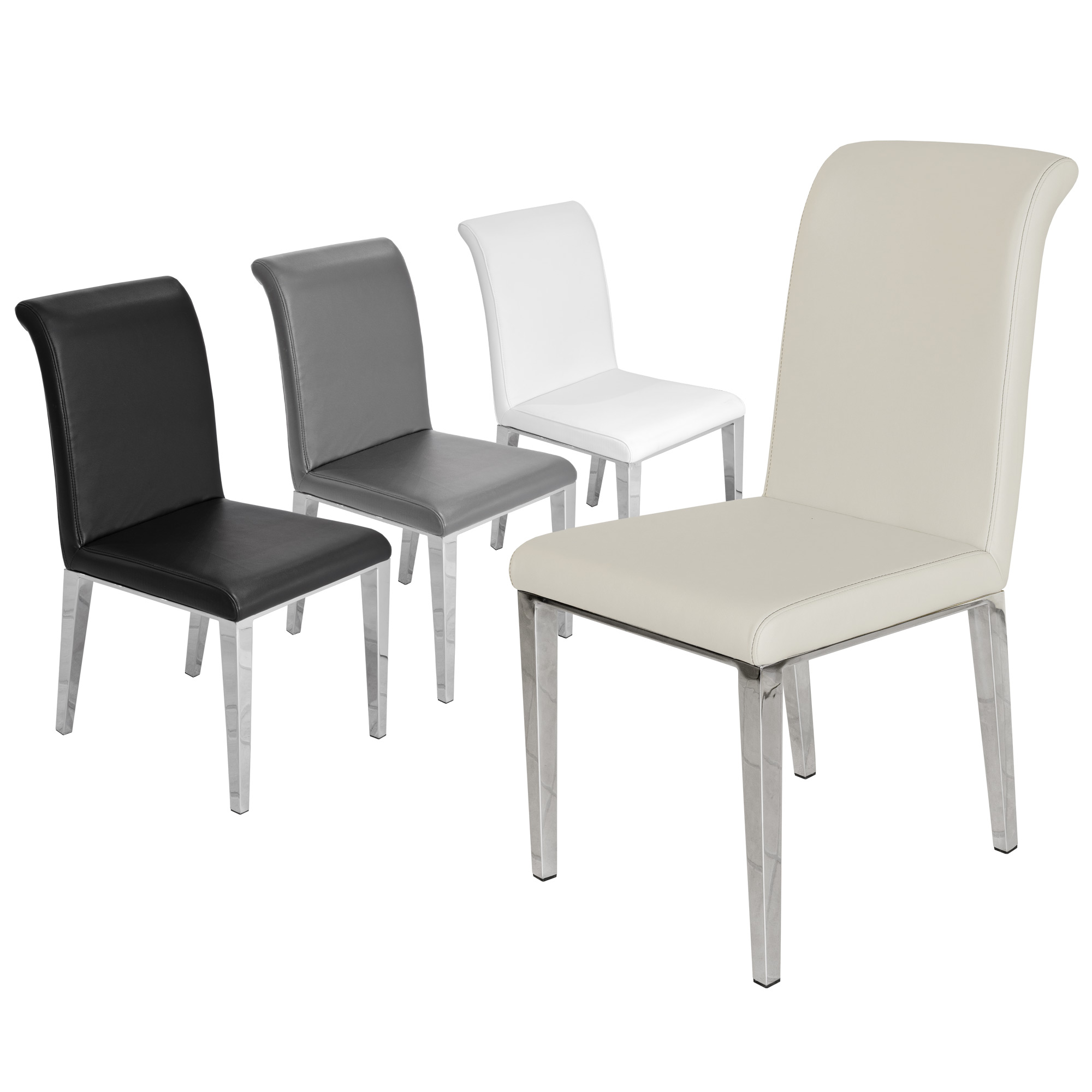 The Kirkland dining chair brings a modern design to your dining room with its stylish chrome frame and upholstered faux leather seat.
