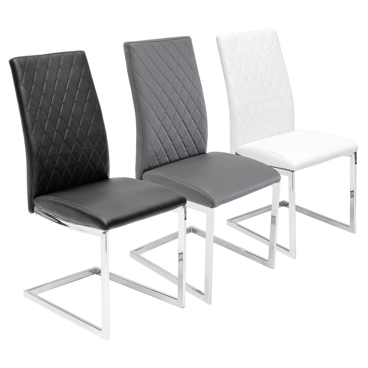 The quilt back dining chair brings a modern design to your dining room with its stylish chrome frame and PU upholstered seat complete with a quilt style pattern design. Available in black or white material.