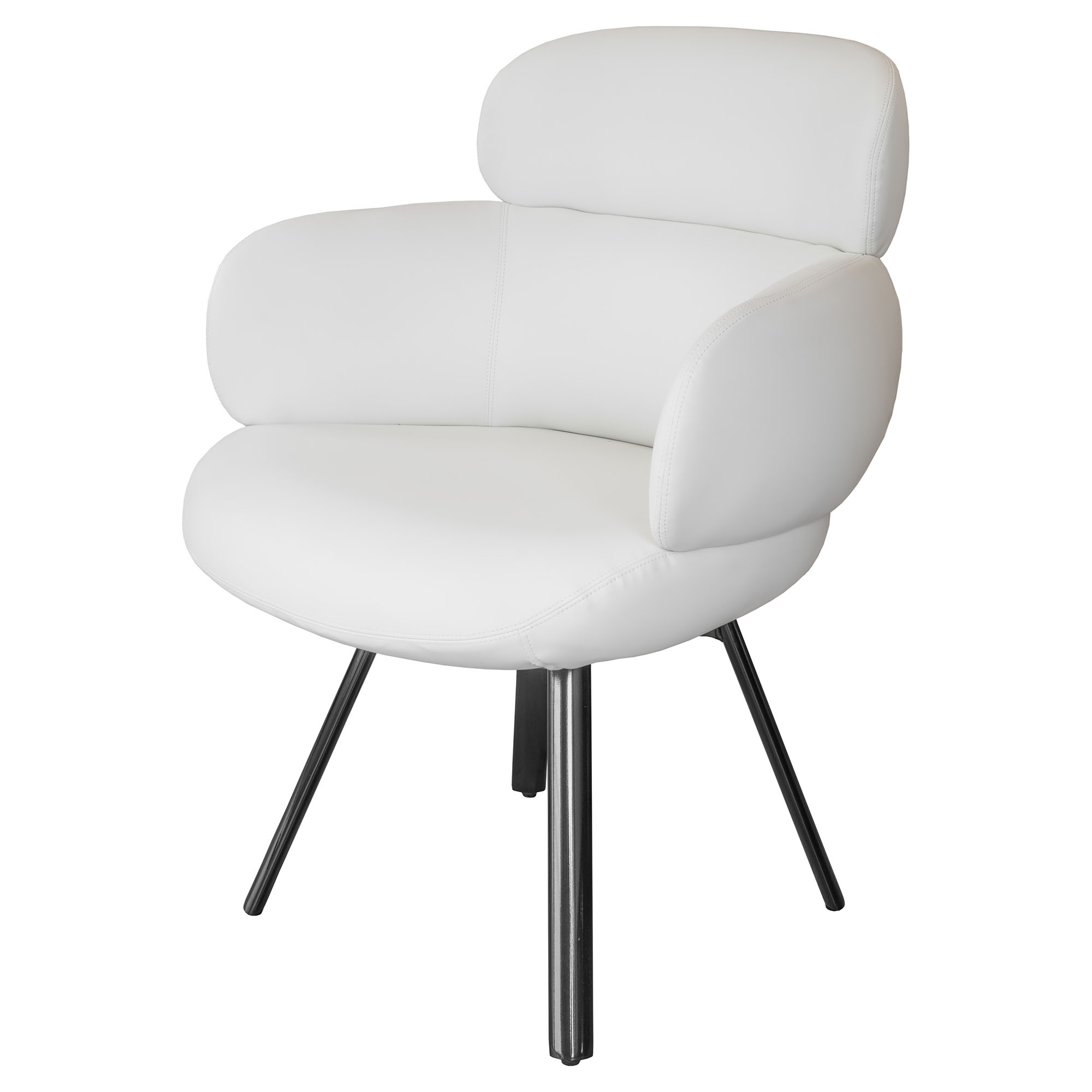 The Liora Dining Chair combines ivory PU upholstery with ribbed stitched detailing, chrome accents and dark grey metal legs for a sleek, contemporary look. Height : 87cm, Seat Height : 48cm, Seat Width : 44cm, Seat Depth : 47cm, Width : 58cm, Depth : 60cm- Ivory PU seat