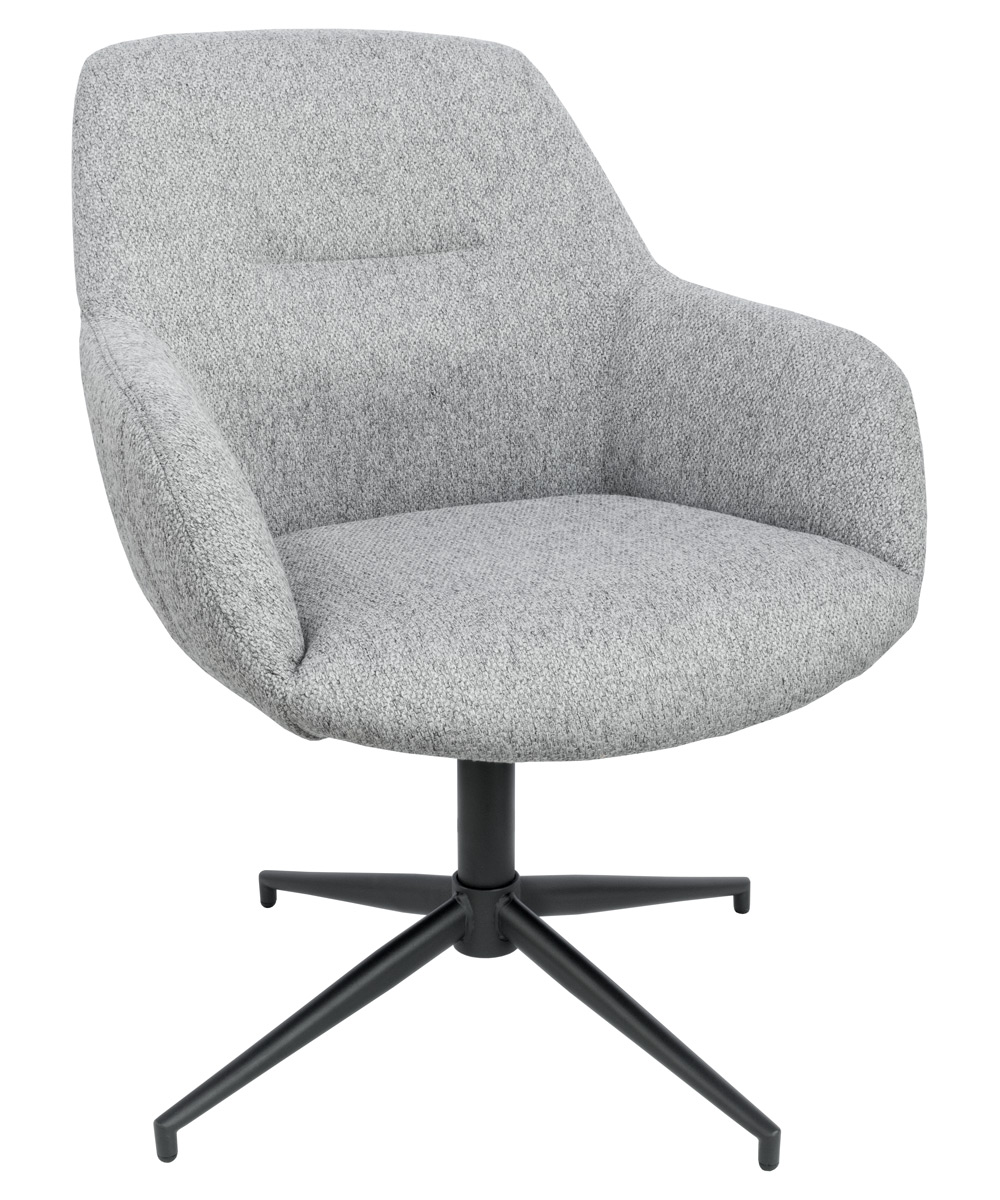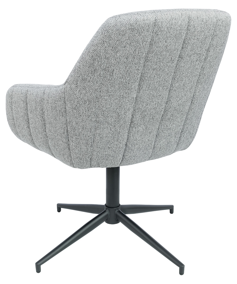 The Ashford Grey Fabric Swivel Chair is a fabulous swivel lounge chair complete with a light grey linen twill fabric mounted on a sturdy black metal frame.