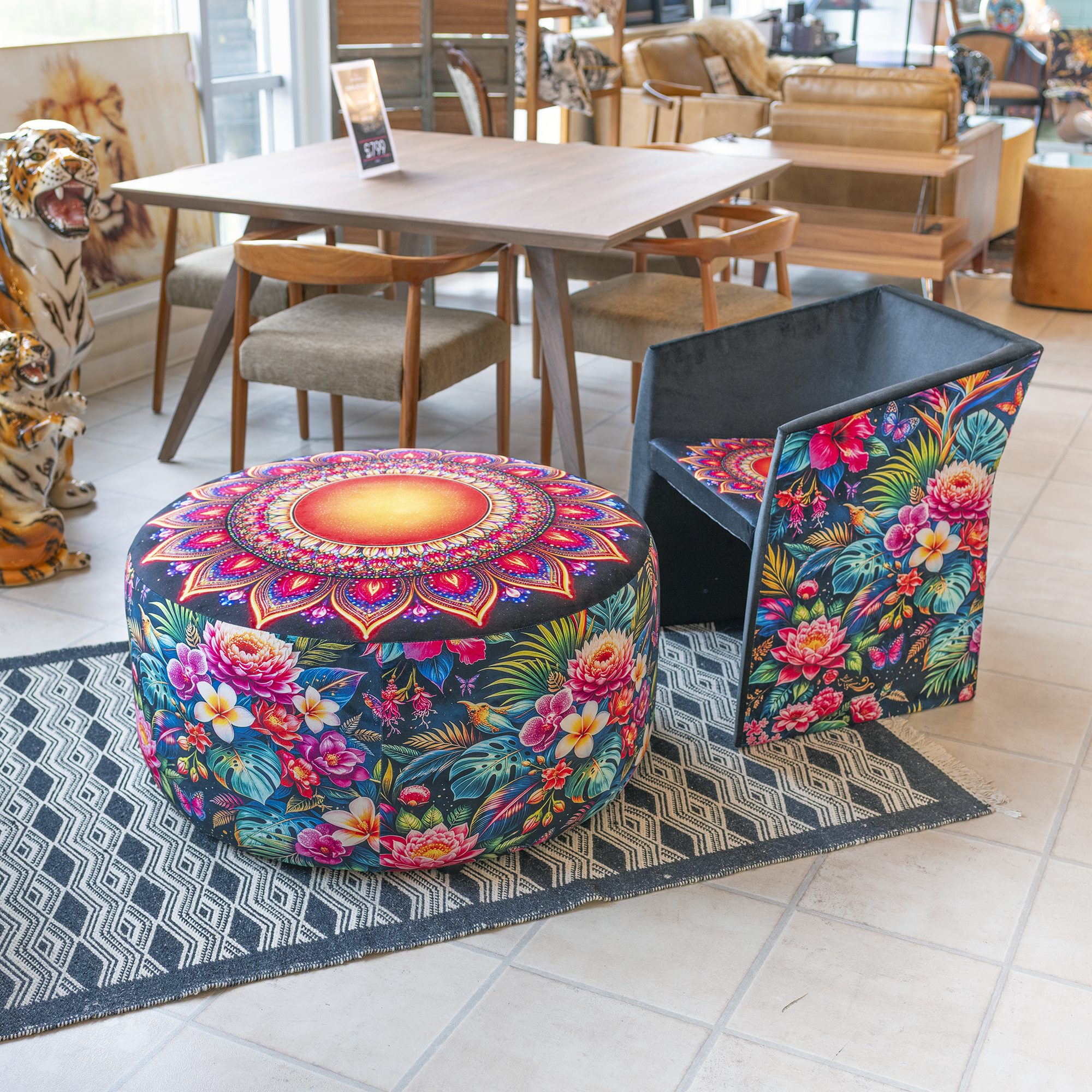 The Mandala Fabric Pouffe brings bold colour, texture and versatility into any interior. It adds both style and practical comfort to modern spaces.