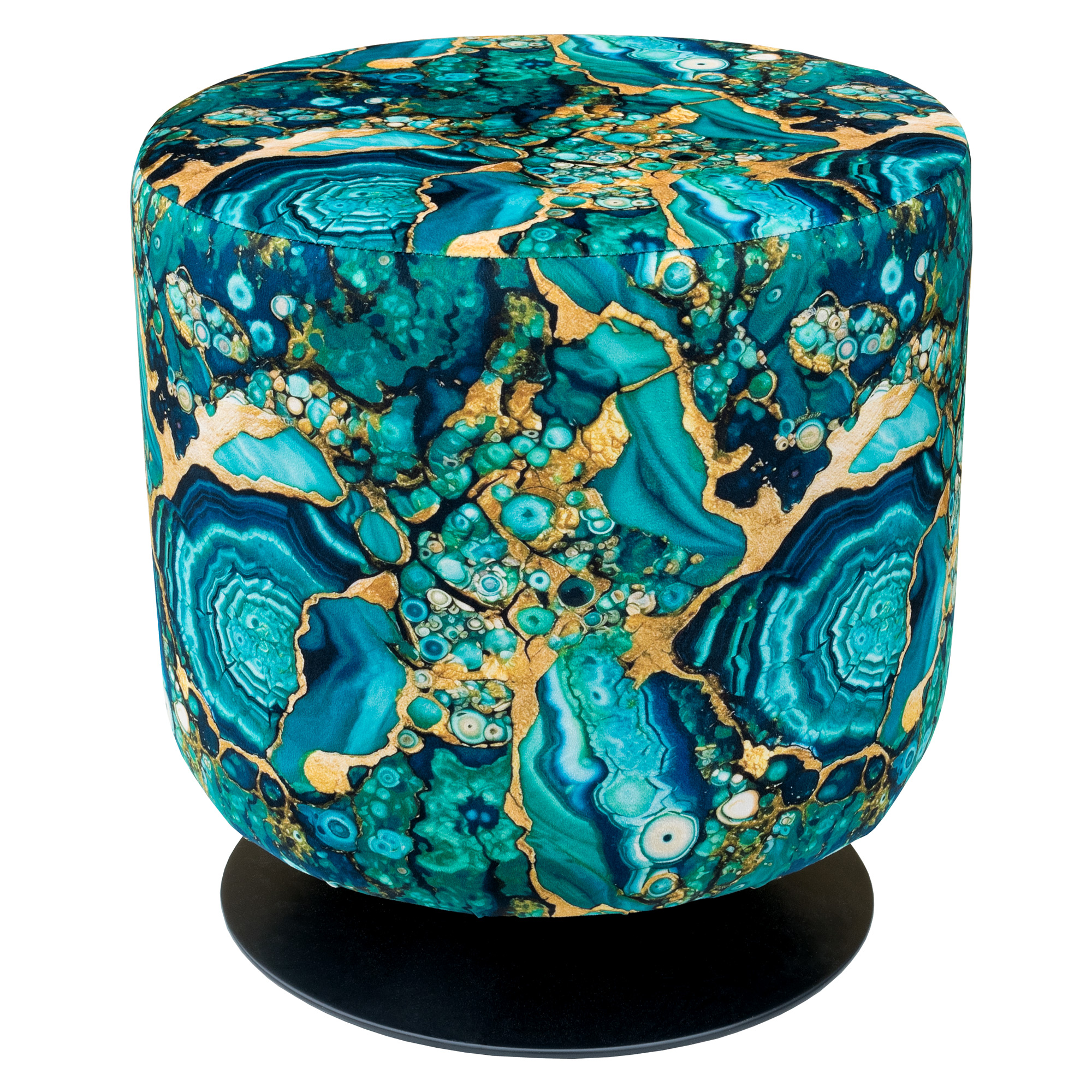 The Bespoke Swivel Drum Stool is part of the Casa Nova Collection range of furniture and home accessories, this round swivel footstool is made from a choice of Laurence Llewelyn-Bowen designer fabrics, Pluto.