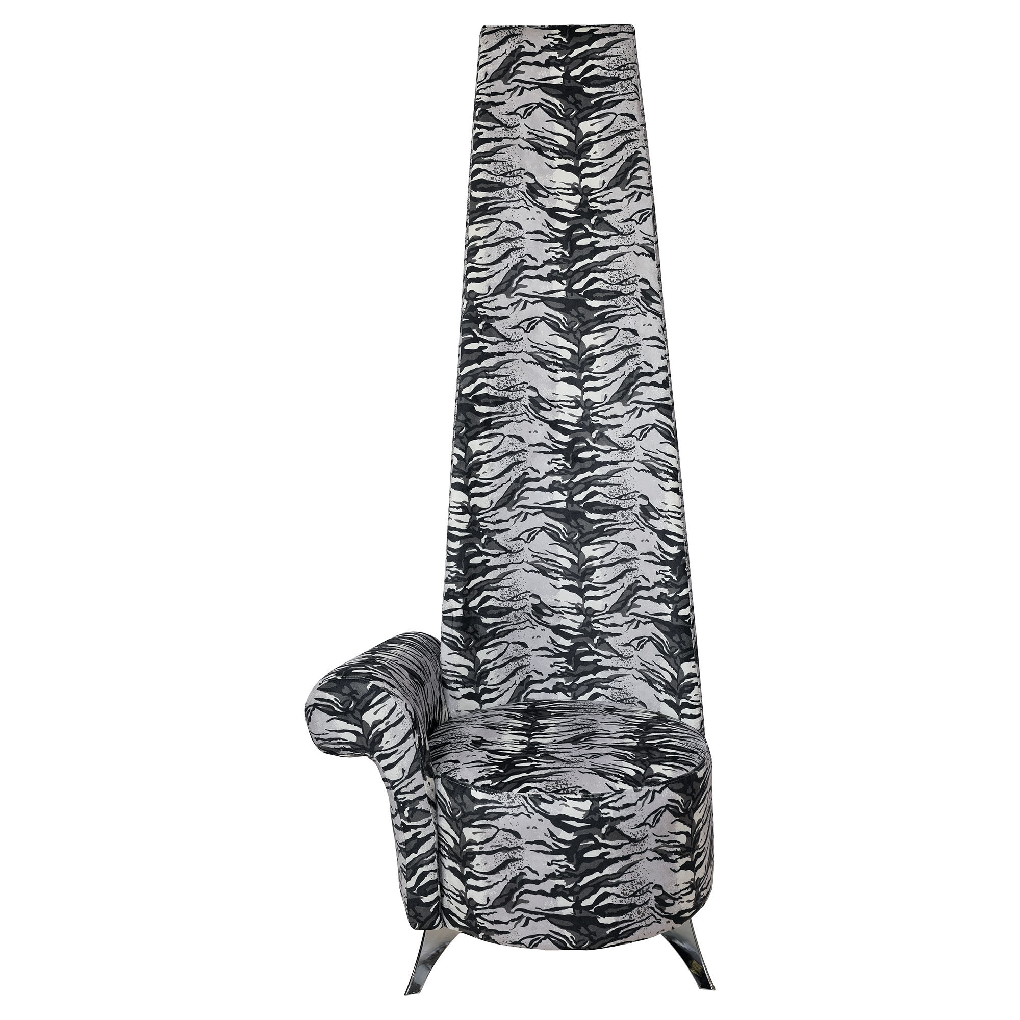 The famous Febland Potenza chair in a silver tiger fabric finish with the original metal triangular feet. Choose from a left or right arm option.
