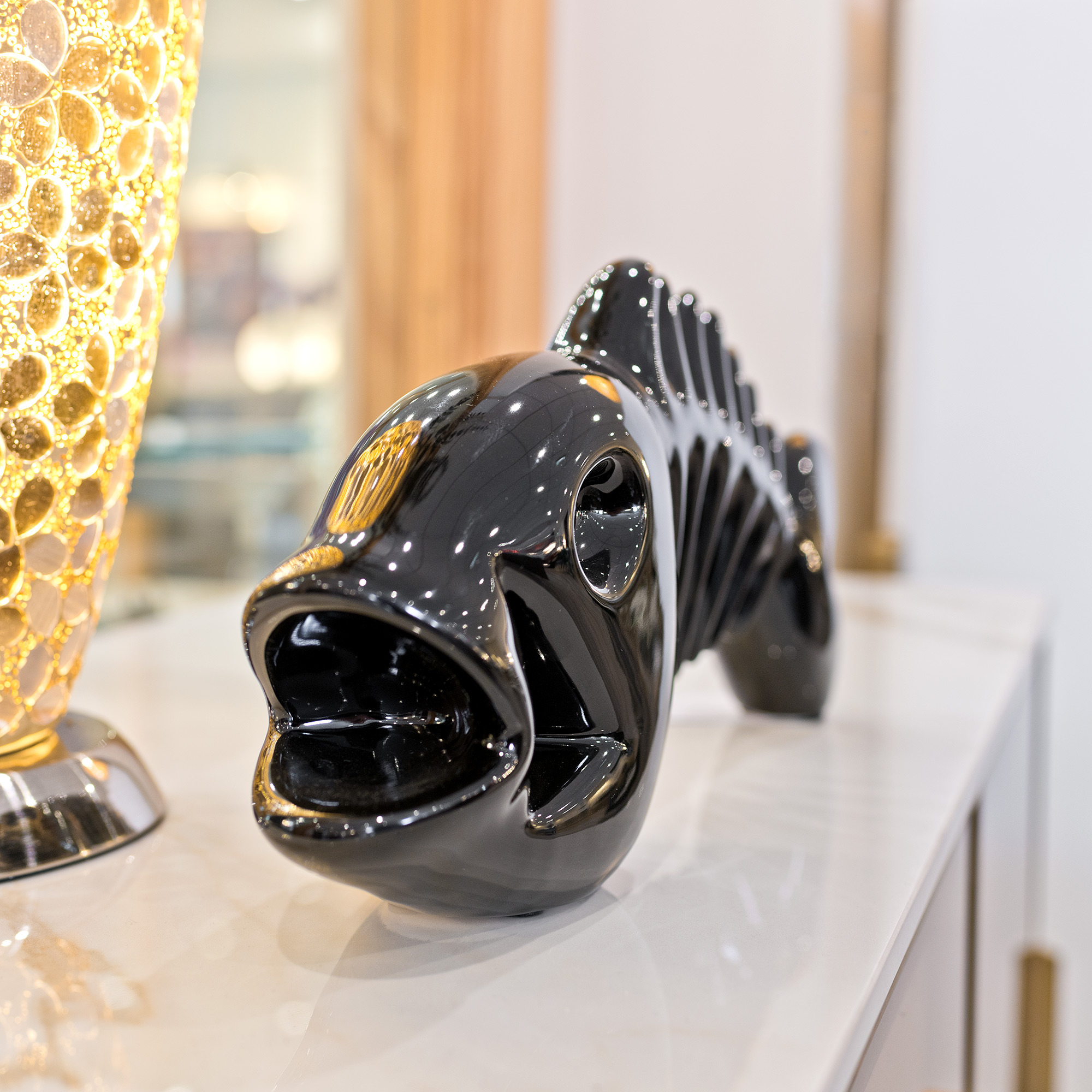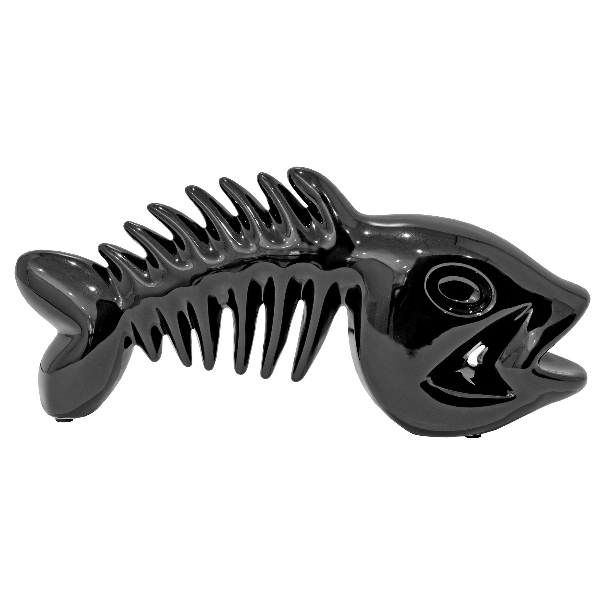Add a splash of modern whimsy to your home with the Ceramic Black Fish Bone sculpture.