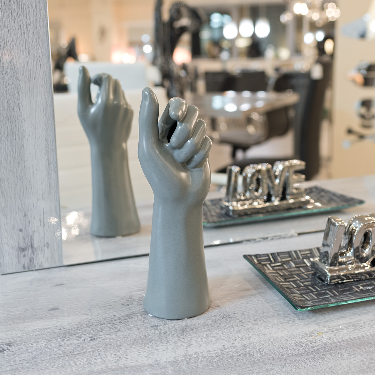 The ceramic grey hand sculpture is the perfect stylish addition to any home, it could look particularly good in a bathroom or even a study area.