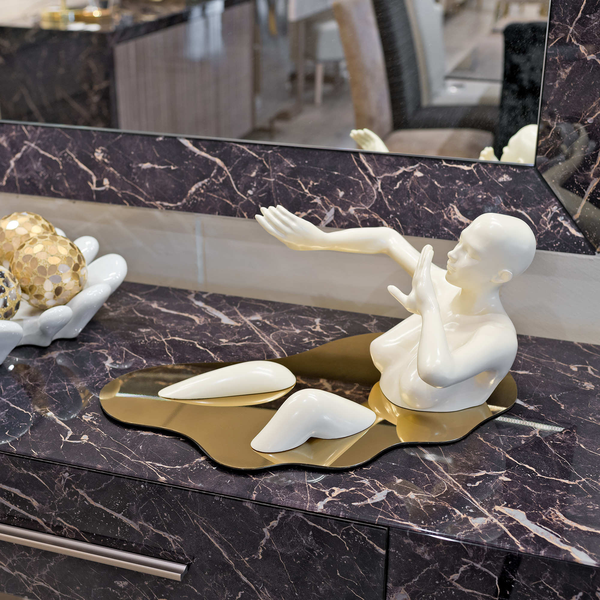 Transform ordinary surfaces into serene showcases. Let the Bathing Lady Sculpture in cream and gold bring calm sophistication and refined sculptural beauty to your home.