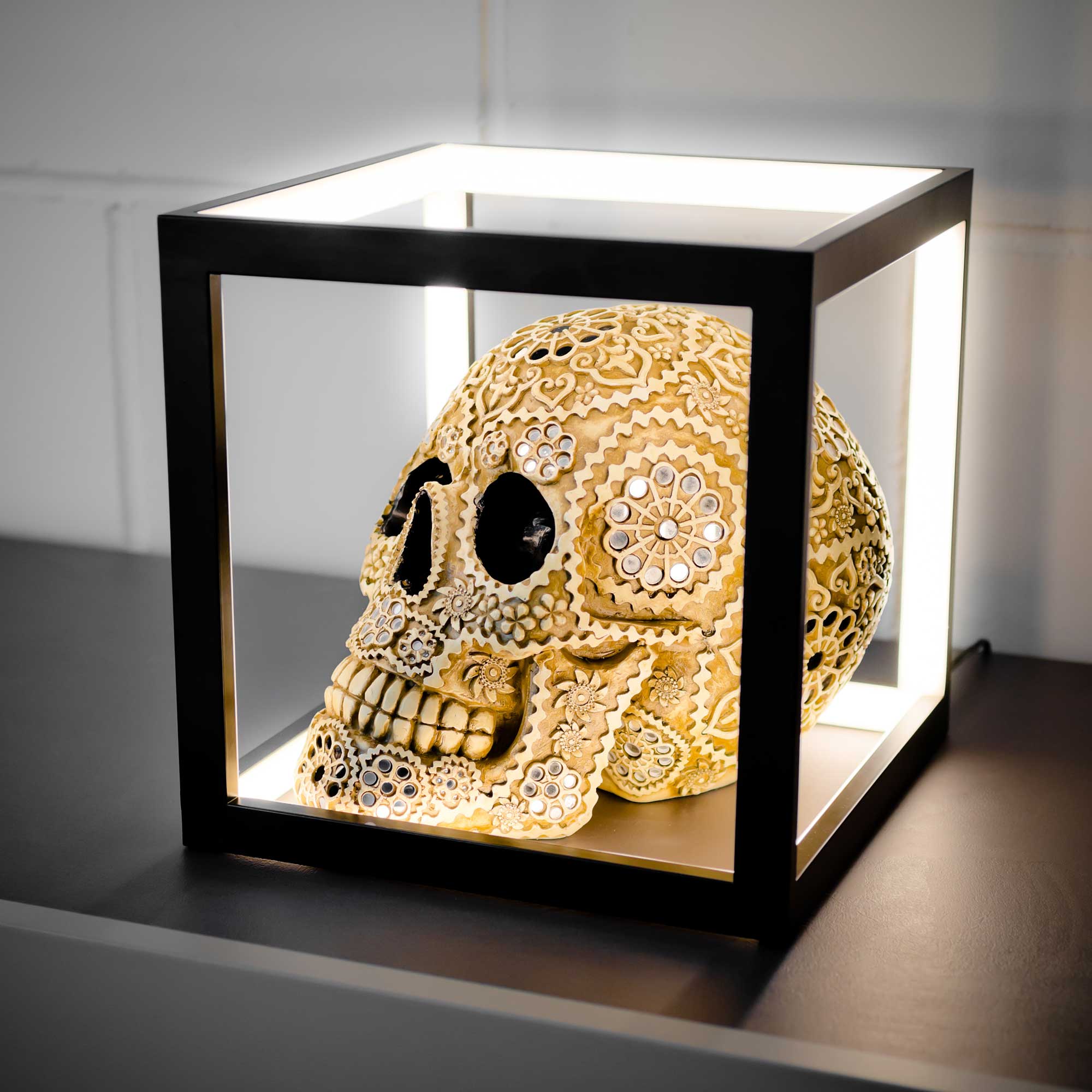 Get ahead of the current trend and decorate your room with this bone-a-fide day of the dead style Calavera model skull. A great piece of modern decor that will get a few heads rolling.