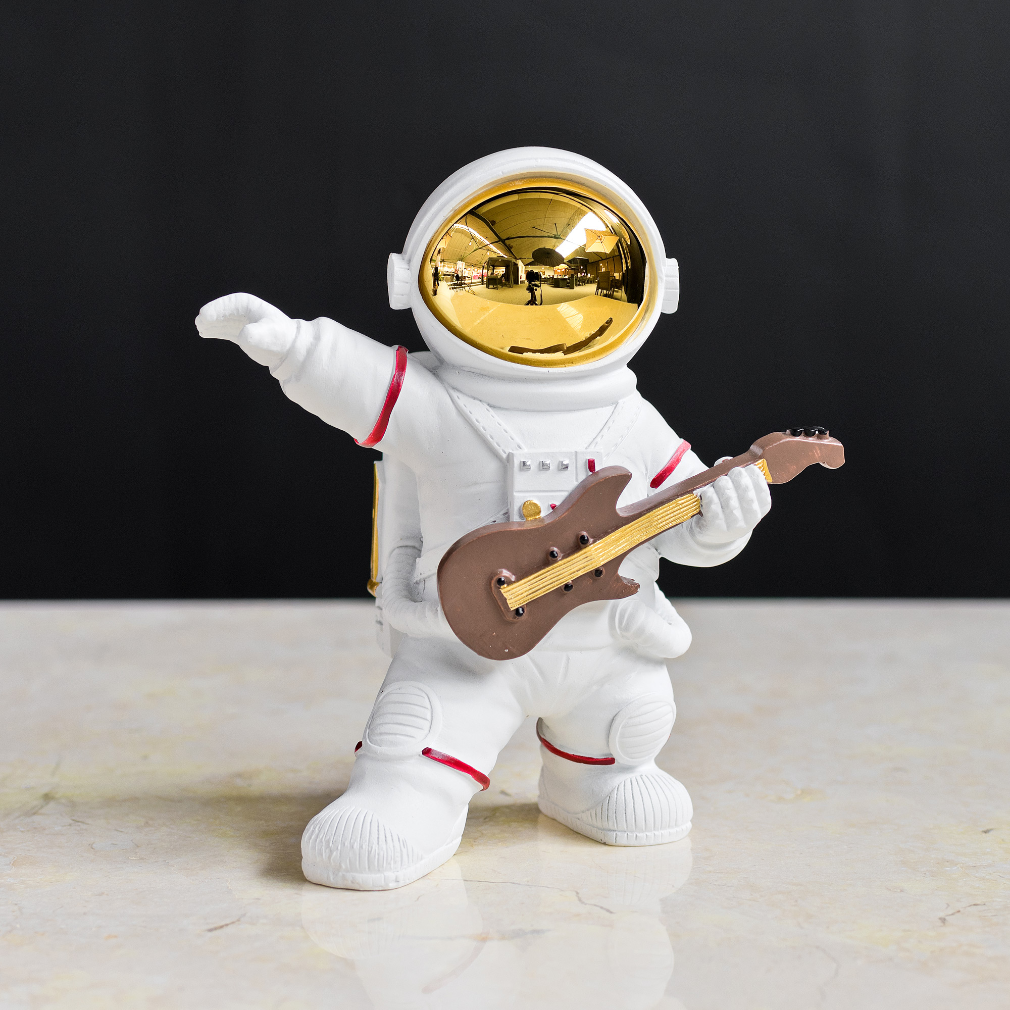 This crafted resin sculpture from Febland captures an astronaut poised to deliver a stellar moon-rock performance, guitar in hand, ready to ignite your décor with cosmic energy.