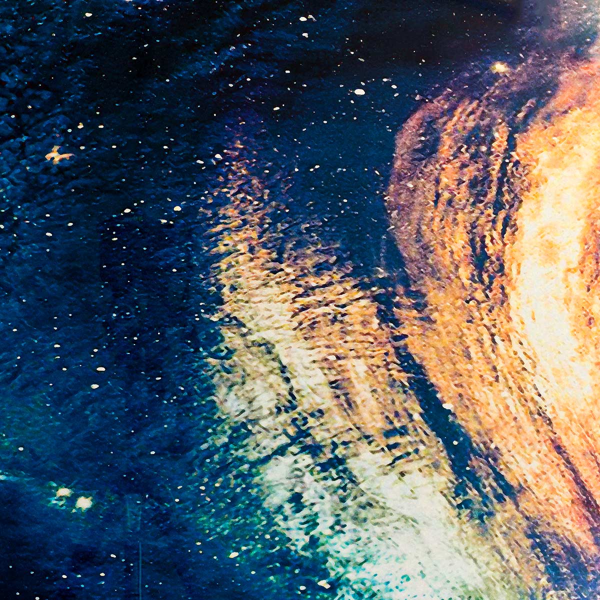 A fabulous circular LED wall art picture depicting an ocean wave highlighted with a bright white LED illuminated border.