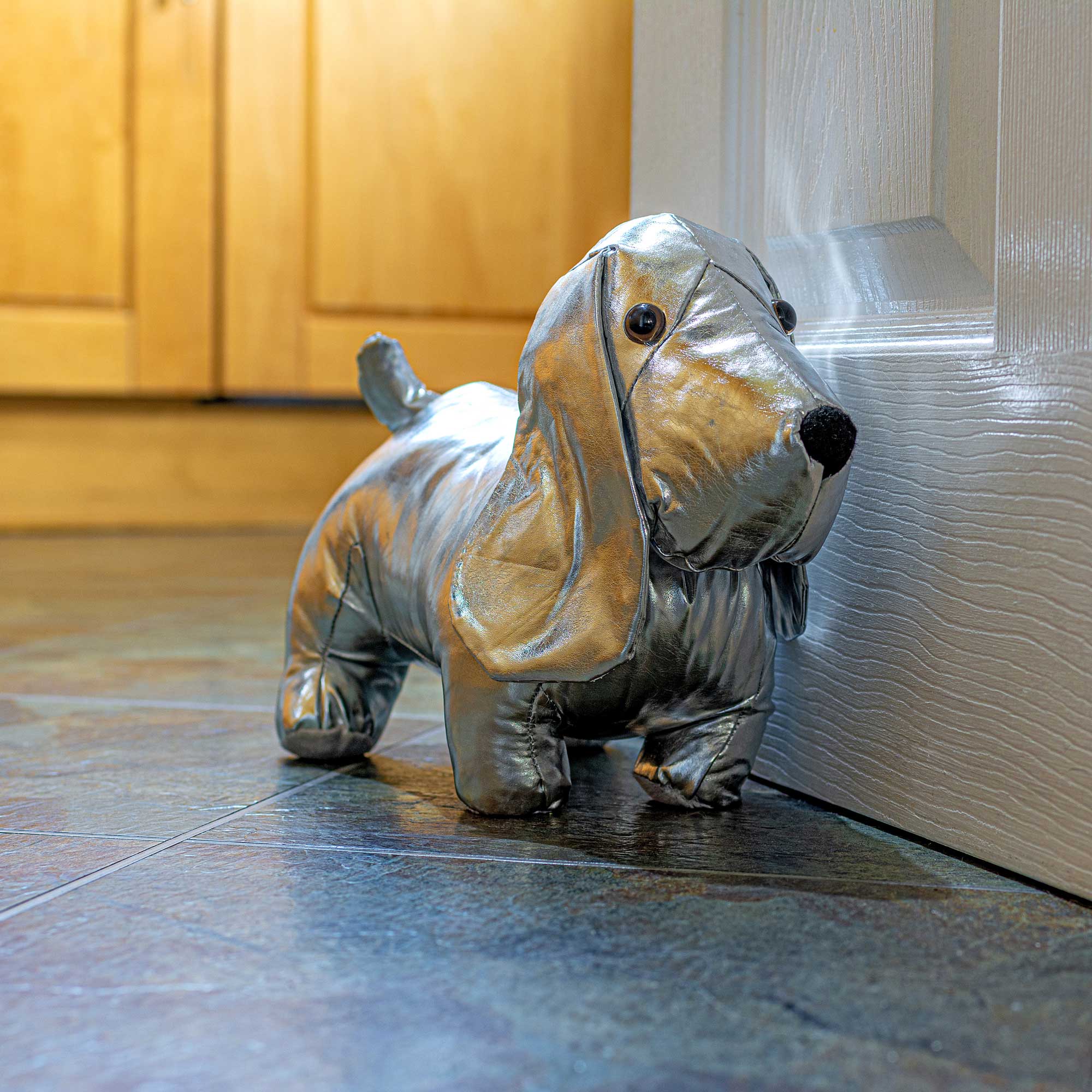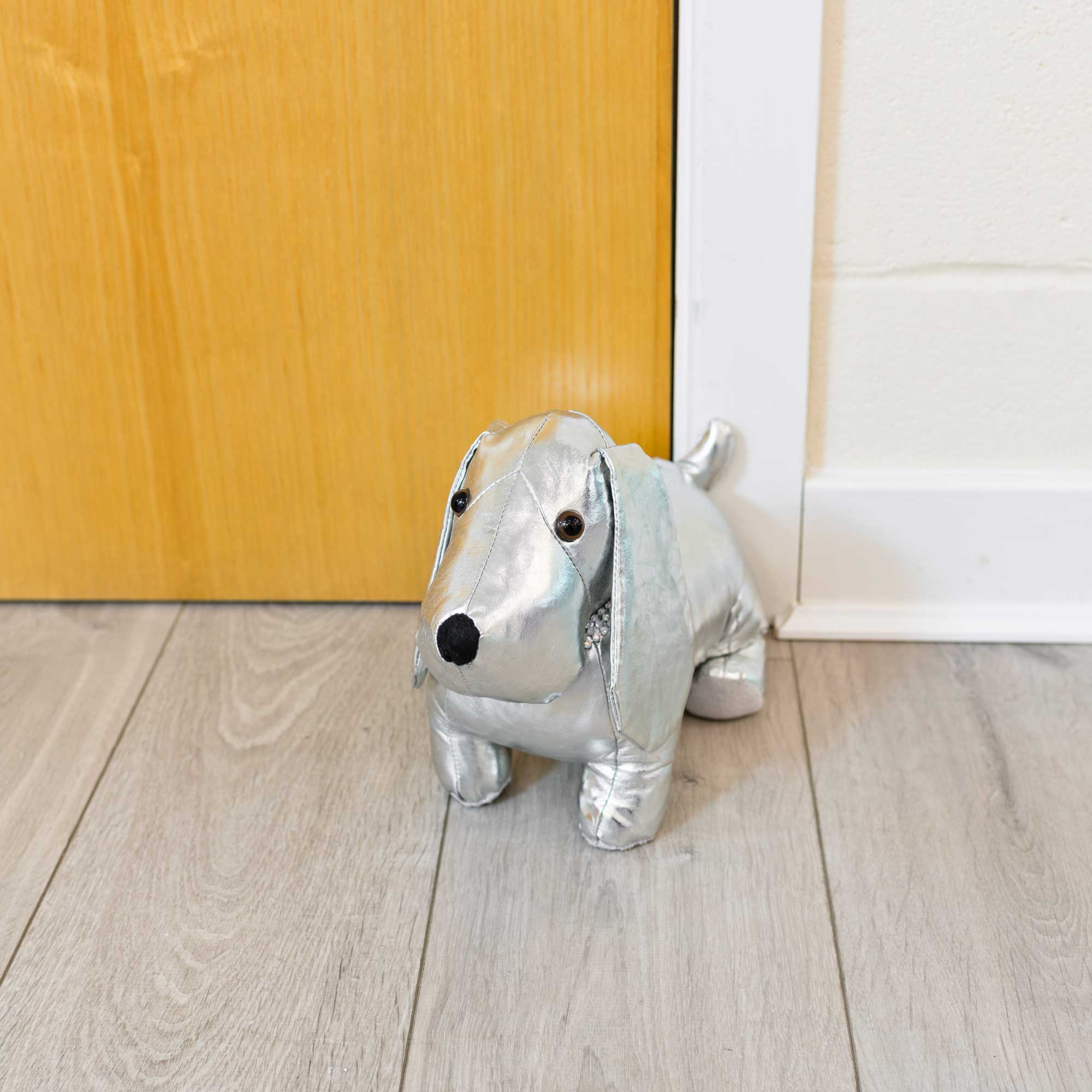 Febland’s now offer a selection of charming and cuddly animal door stops. This shiny silver dog door stop plush could be a cute addition to your home and perfect for the kids bedroom, keeping the children’s door open with style.