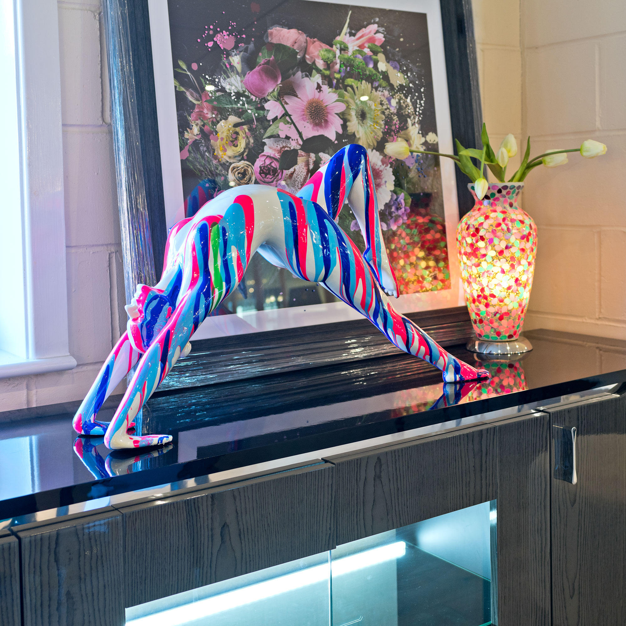 Amorous Pink and Blue Yoga Lady Sculpture