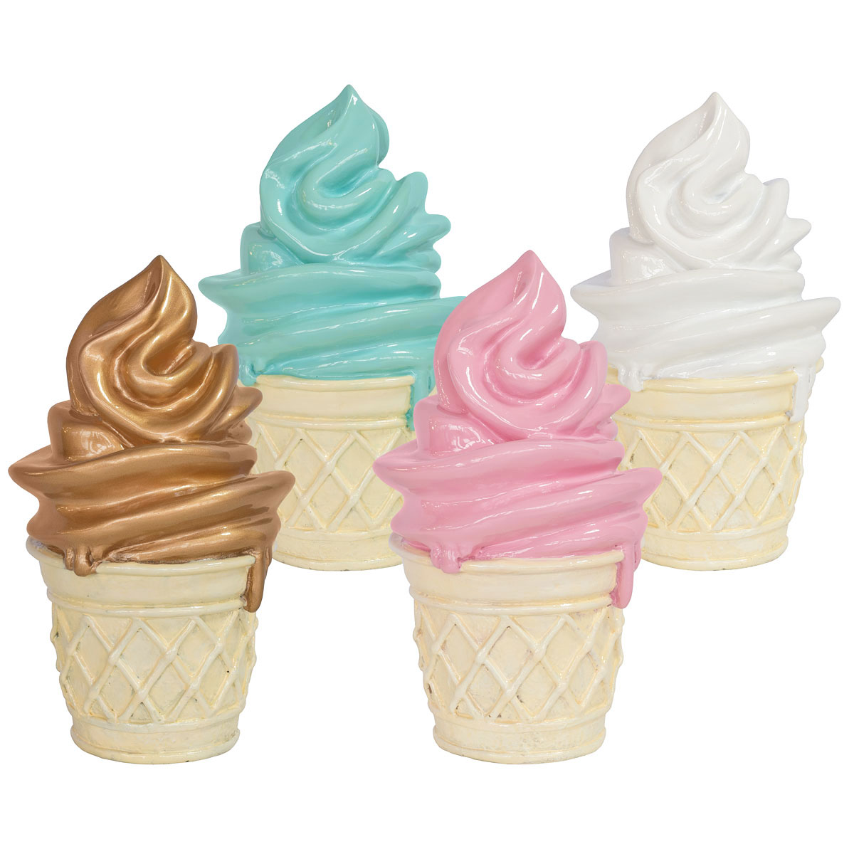 A delicious life-like ice cream cone sculpture in a molded resin finish, choose from a four colours available in both small (MP232) and large (MP233) sizes.