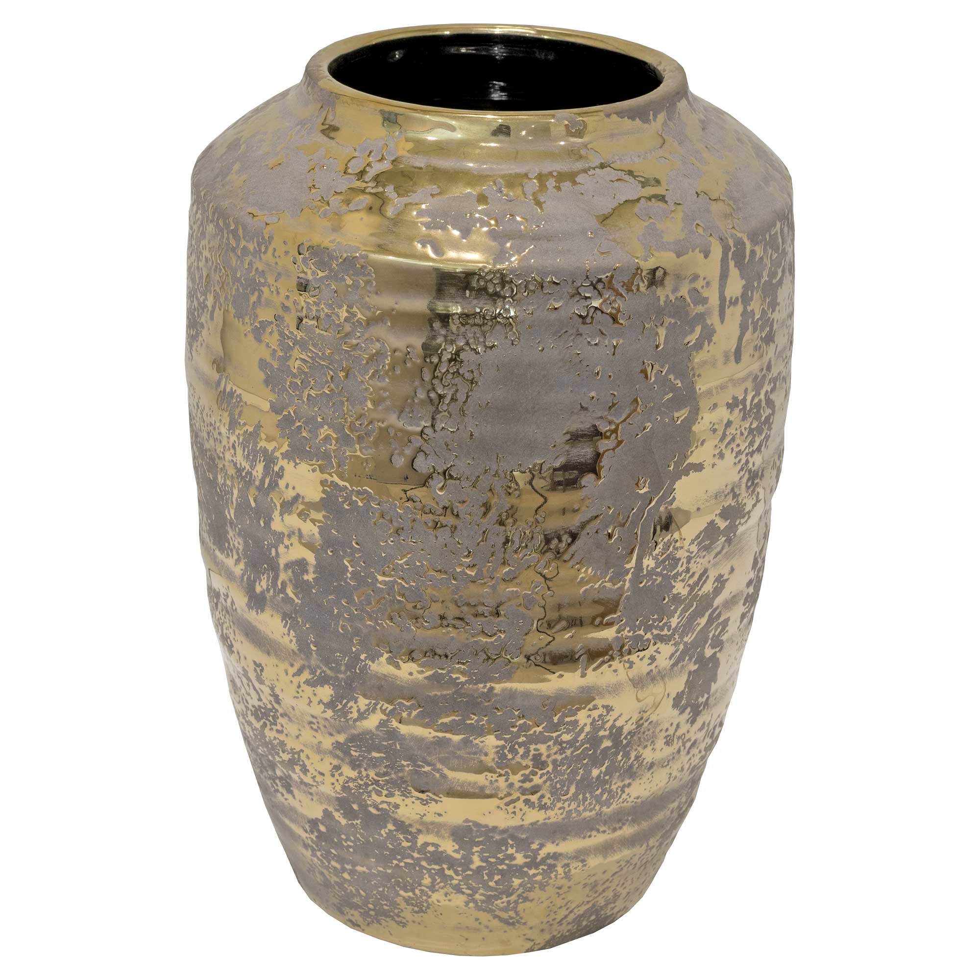 The Aurous Fleck Medium Pot is a fabulous grey ceramic pot covered in a gold fleck effect that really makes it stand out with its shiny reflective surface with a black glossy interior.
