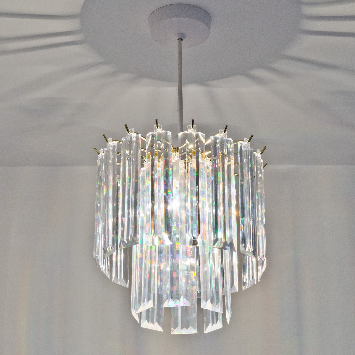 Designed to attach to a single hanging light bulb, it has pendants that reflect and refract light beautifully. Easy to fit, this is a modern yet affordable piece of luxury for your home.