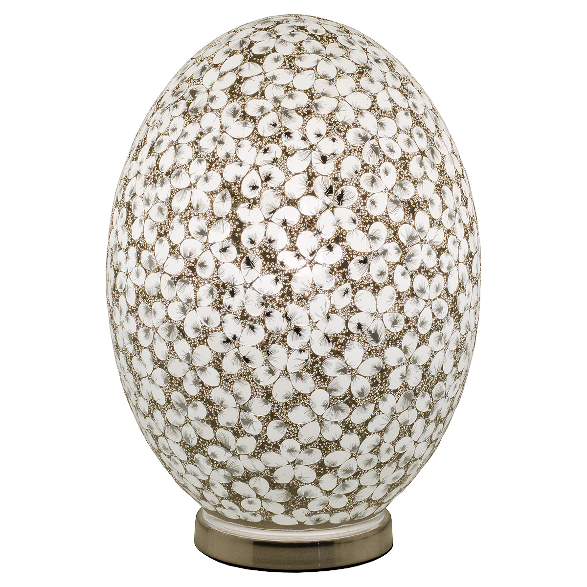 Large Mosaic Glass Egg Lamp – White Flower