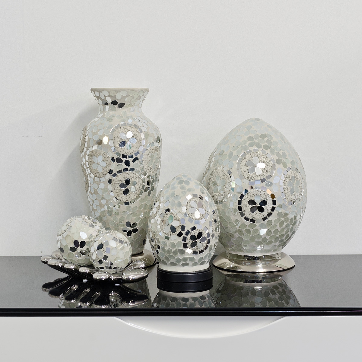 Mosaic Glass Egg Lamp – Mirrored Art Deco