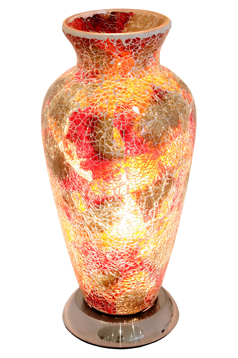 The Red Mosaic Vase Lamp gives a soft mood light while creating a magical atmosphere and adding a romantic feel to any room. Each Lamp is hand blown decorated glass. This lamp would be an asset to any bedroom or living room or make a great gift for someone special. They look just as fabulous switched off too!
