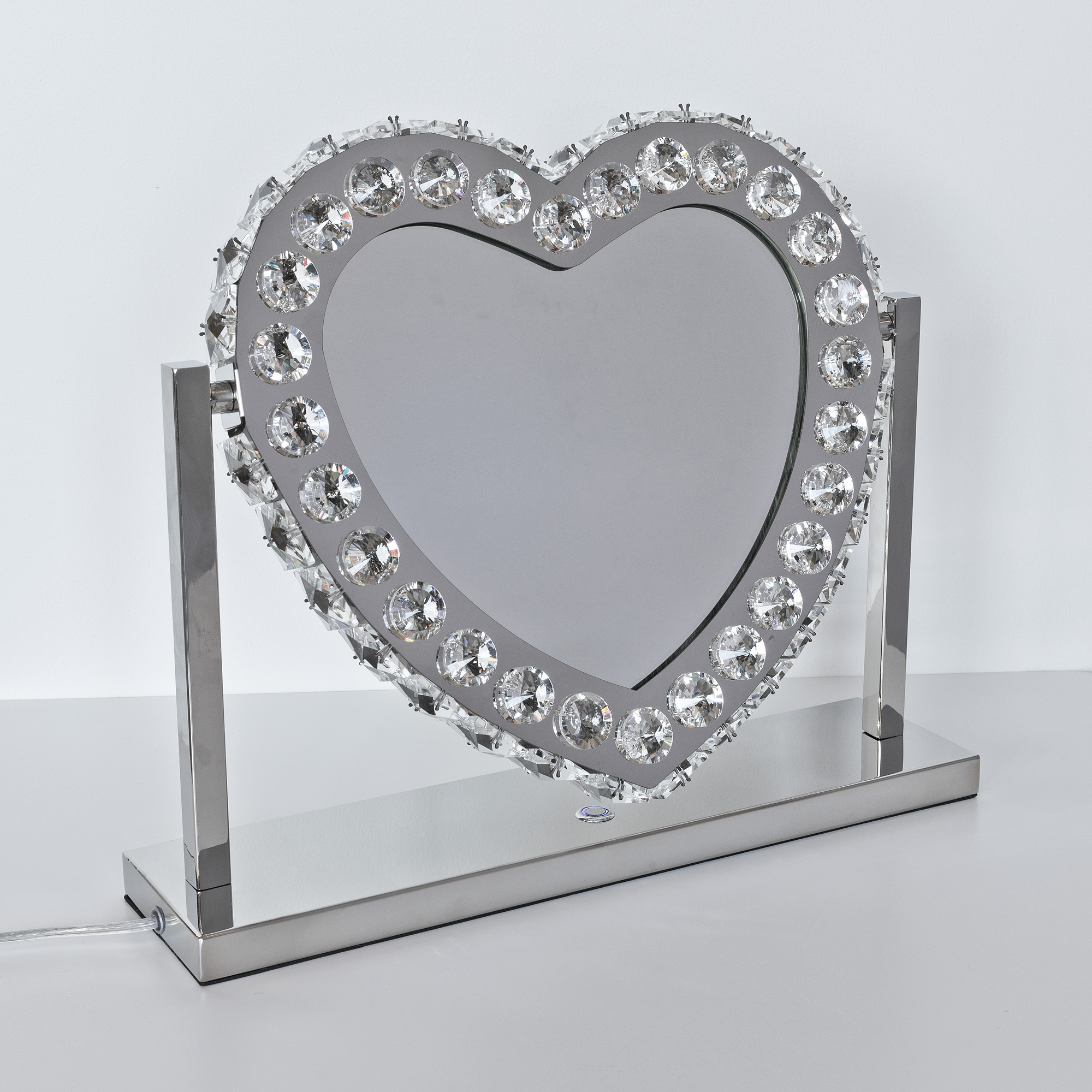 A luxurious heart shaped mirror light that gives off a powerful pressence with its glass crystal and mirrored design, looks fabulous on a dressing table.