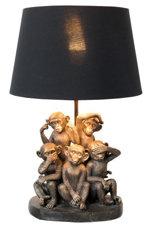 A cheeky sitting monkey lamp holding a bulb above his head pondering life and how to brighten your day, made from a resin material this novelty table lamp would look great around the home providing a bit of character and individuality to your interior decor.