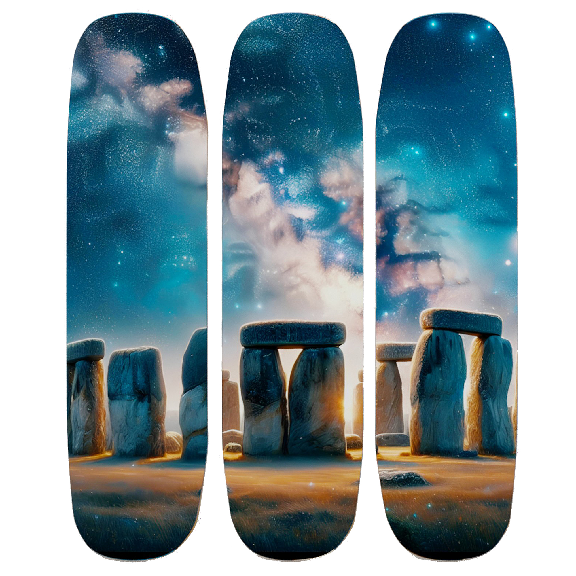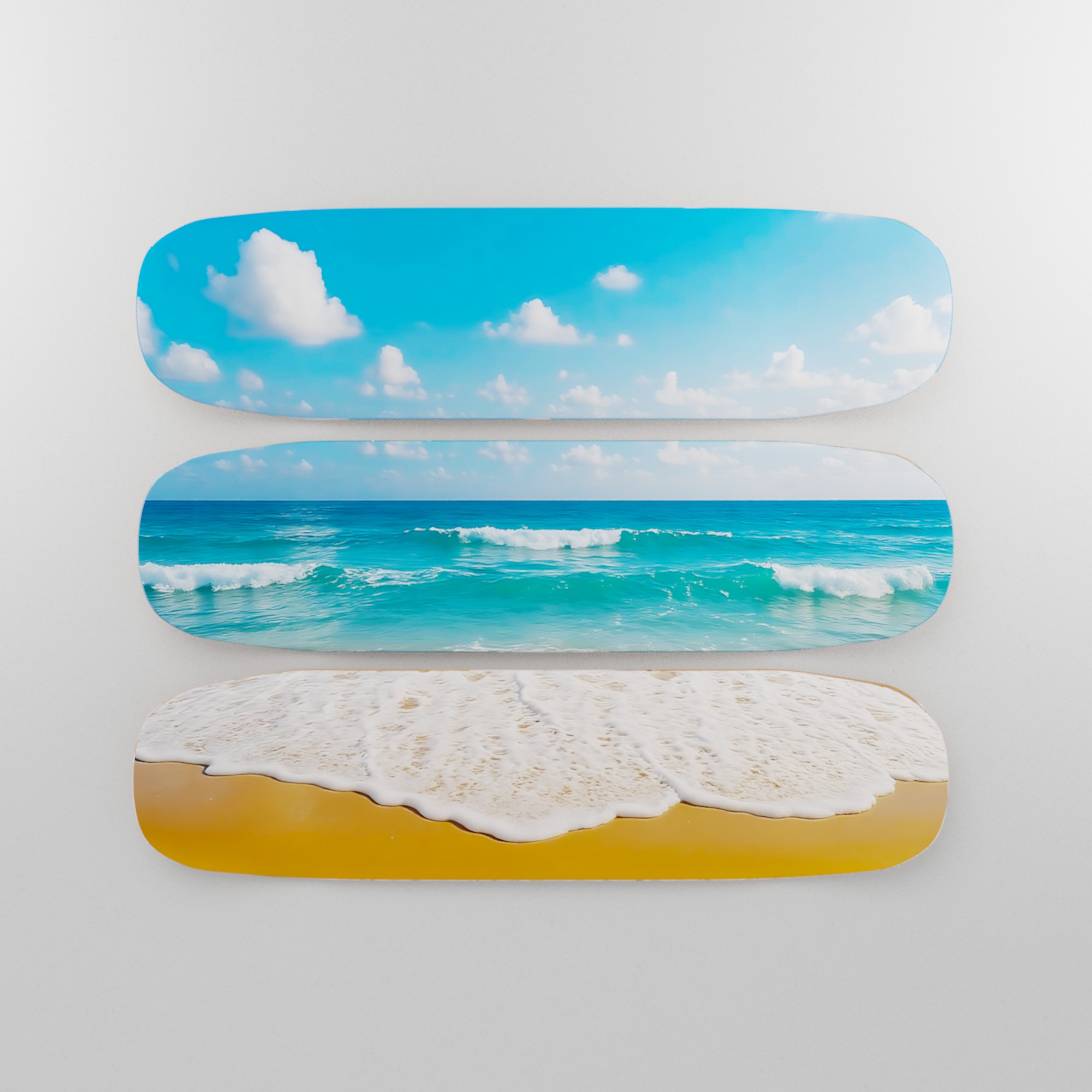 A set of three Velvet Fabric Skateboard Decks with a matching design, a standout set from Febland’s Velvet Artwork Collection that seamlessly blends contemporary style with street-art flair.