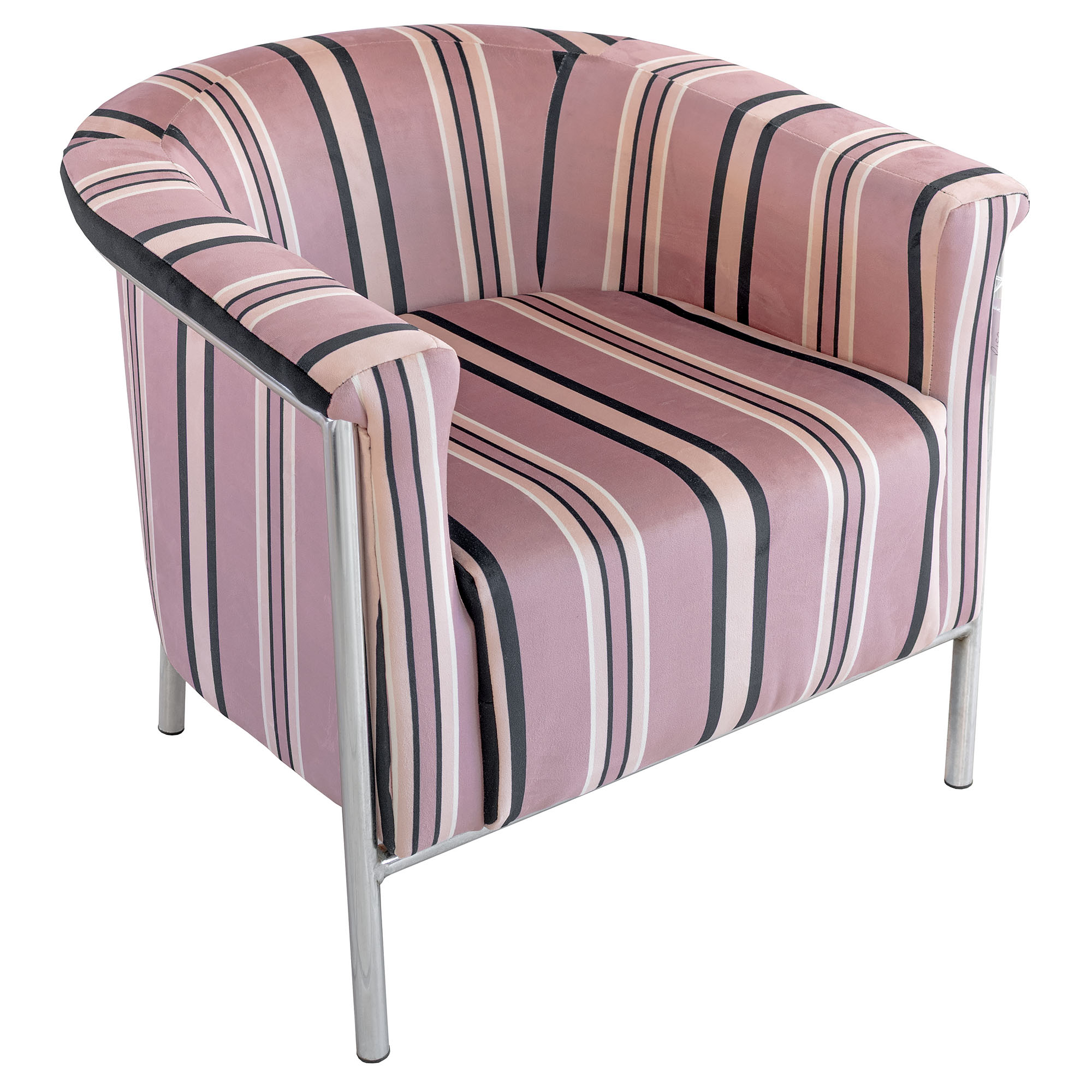 A unique one of a kind bespoke pink stripe tub chair with a chrome frame.