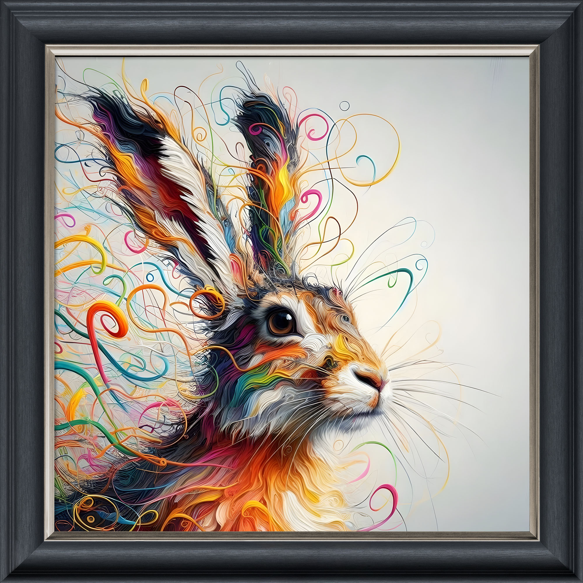 The Mad March Hare illusion artwork, crafted using high-quality French velvet, where the frame is cleverly printed as part of the artwork