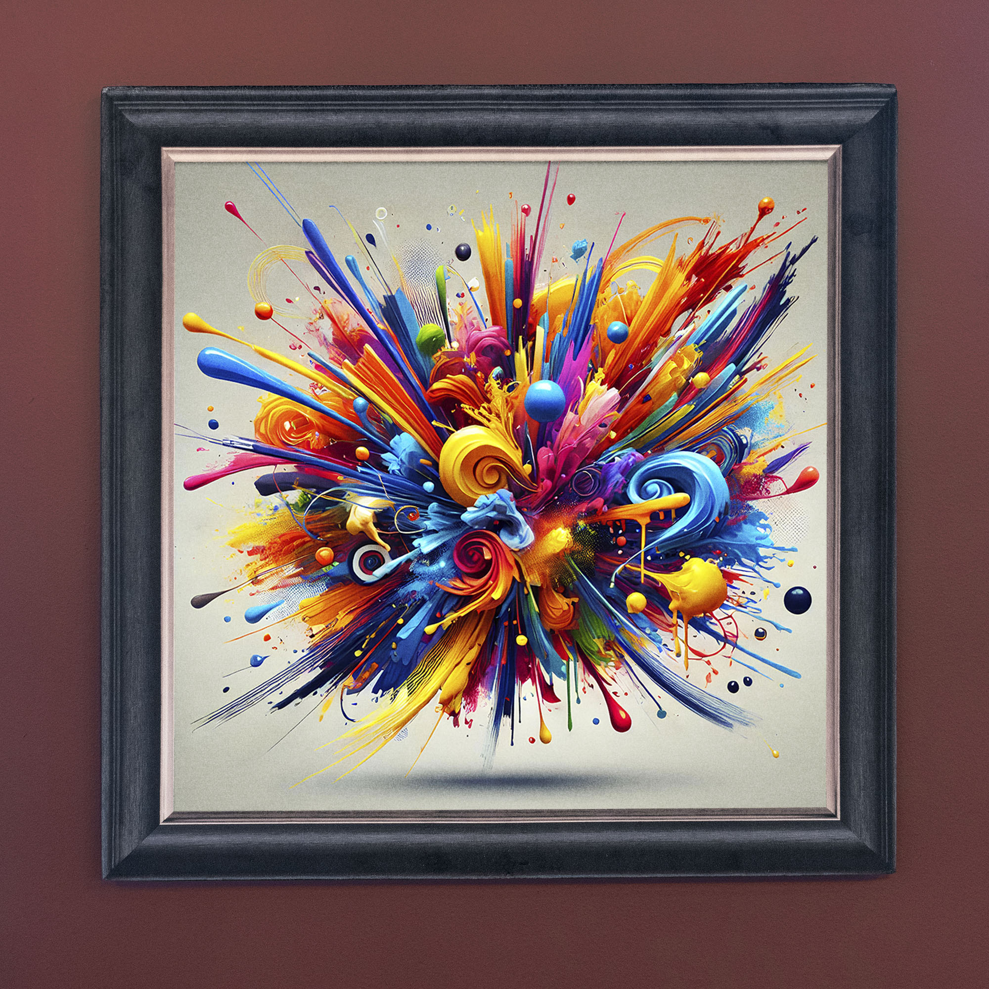 The Colour Burst illusion artwork, crafted using high-quality French velvet, where the frame is cleverly printed as part of the artwork