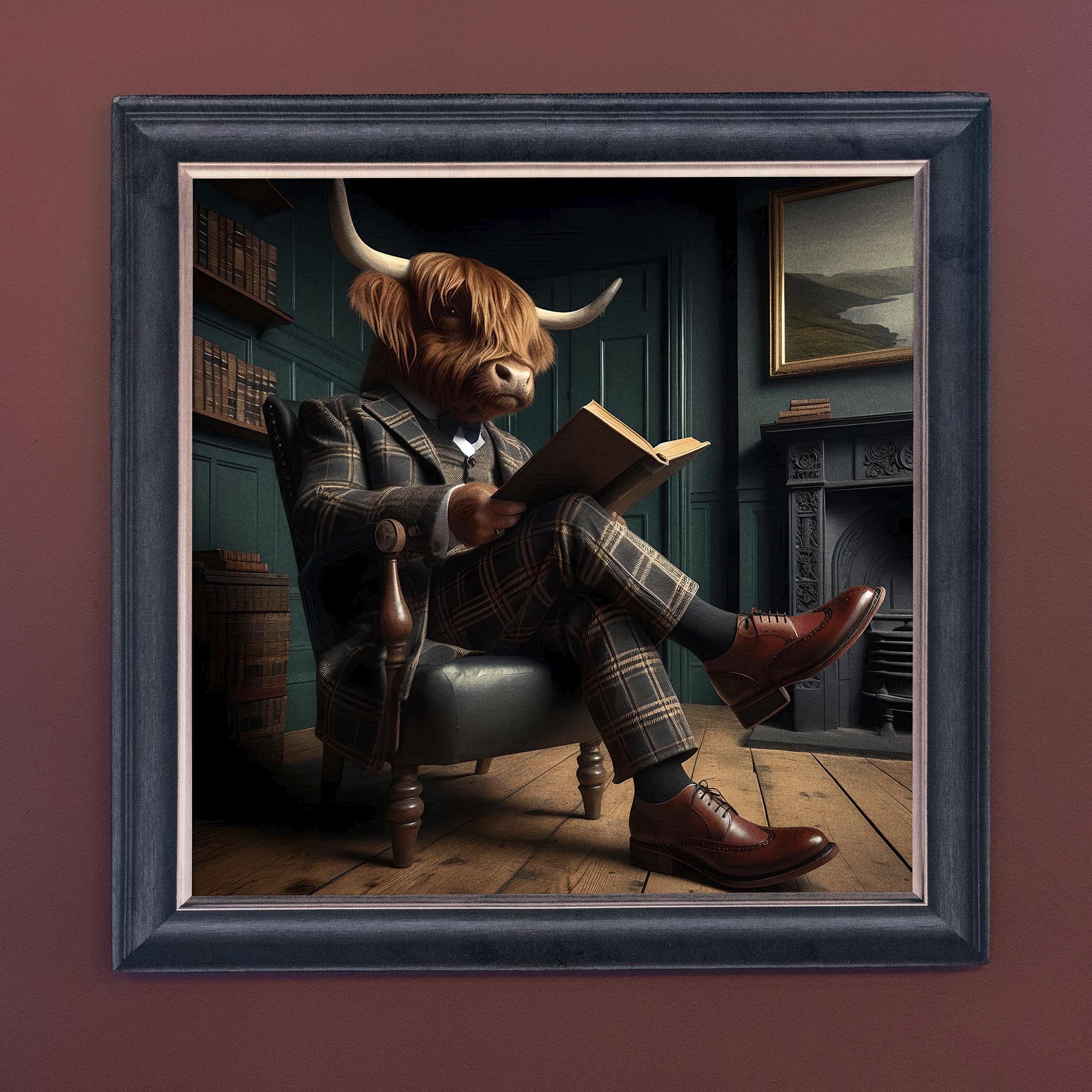 The Studious Cow illusion artwork, crafted using high-quality French velvet, where the frame is cleverly printed as part of the artwork