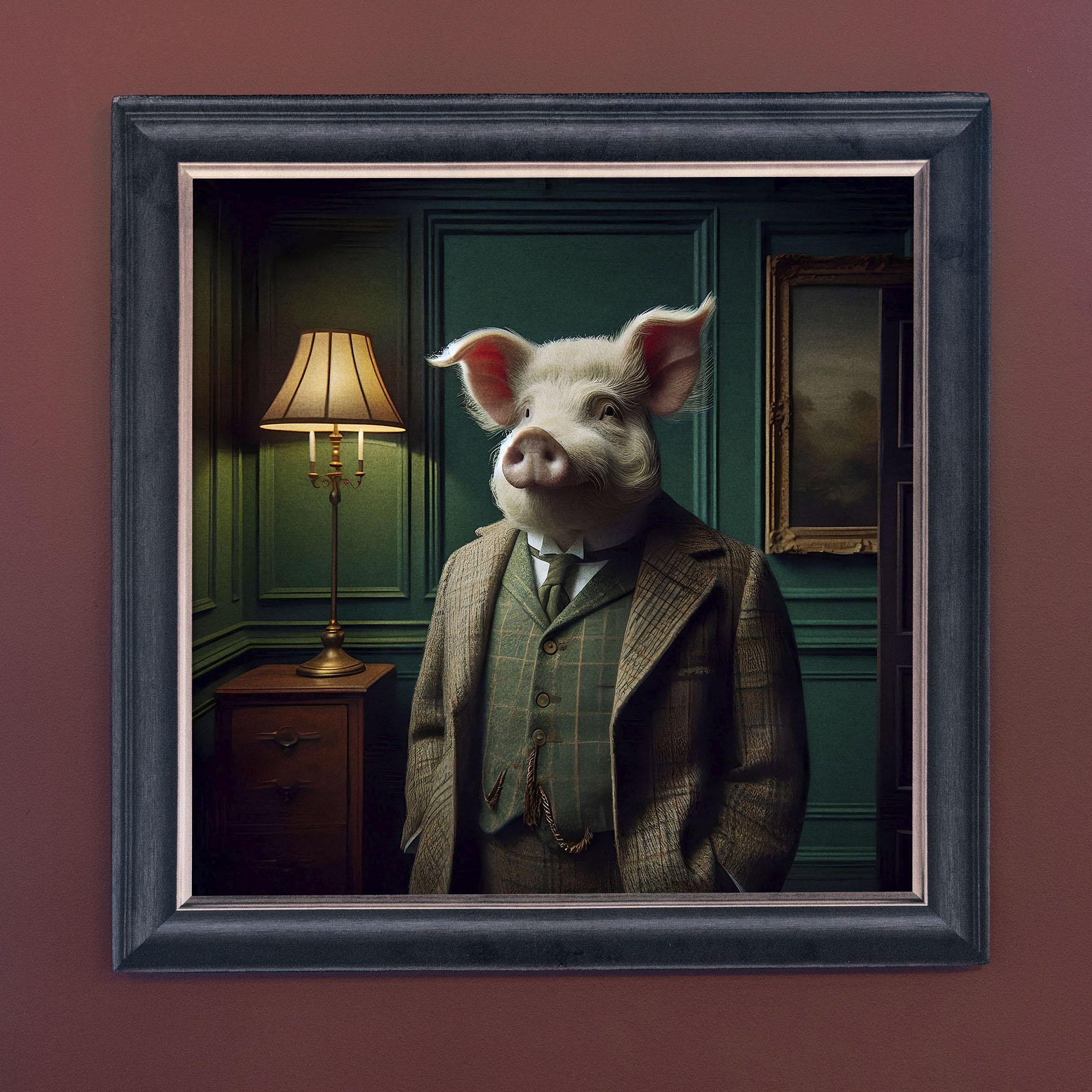 The You Sir are a Pig illusion artwork, crafted using high-quality French velvet, where the frame is cleverly printed as part of the artwork