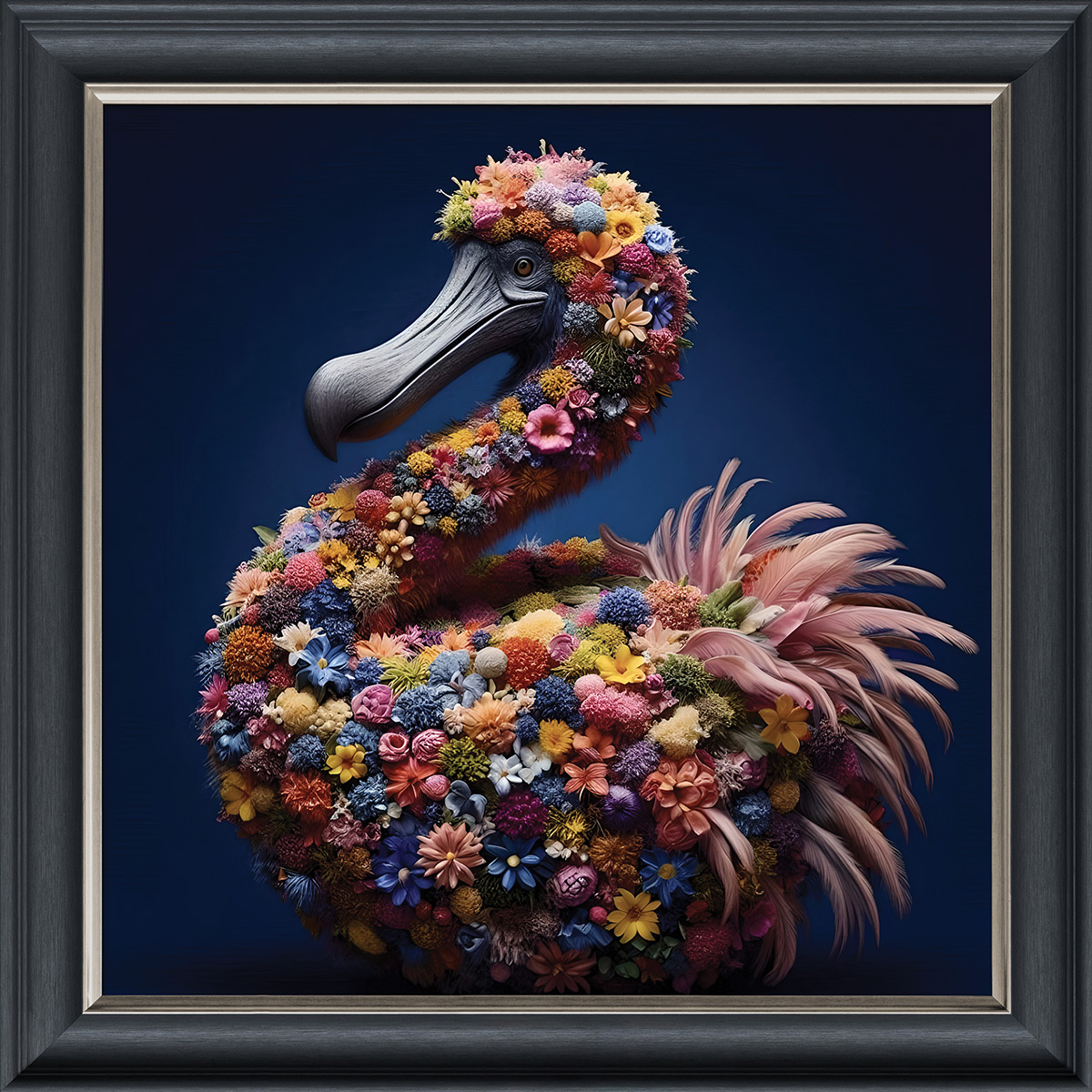 The Dandelion Dodo illusion artwork, crafted using high-quality French velvet, where the frame is cleverly printed as part of the artwork