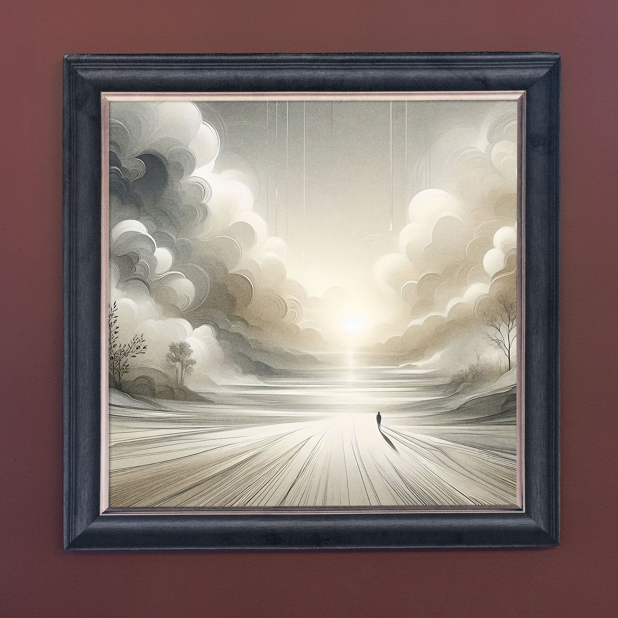 The Day Breaks illusion artwork, crafted using high-quality French velvet, where the frame is cleverly printed as part of the artwork