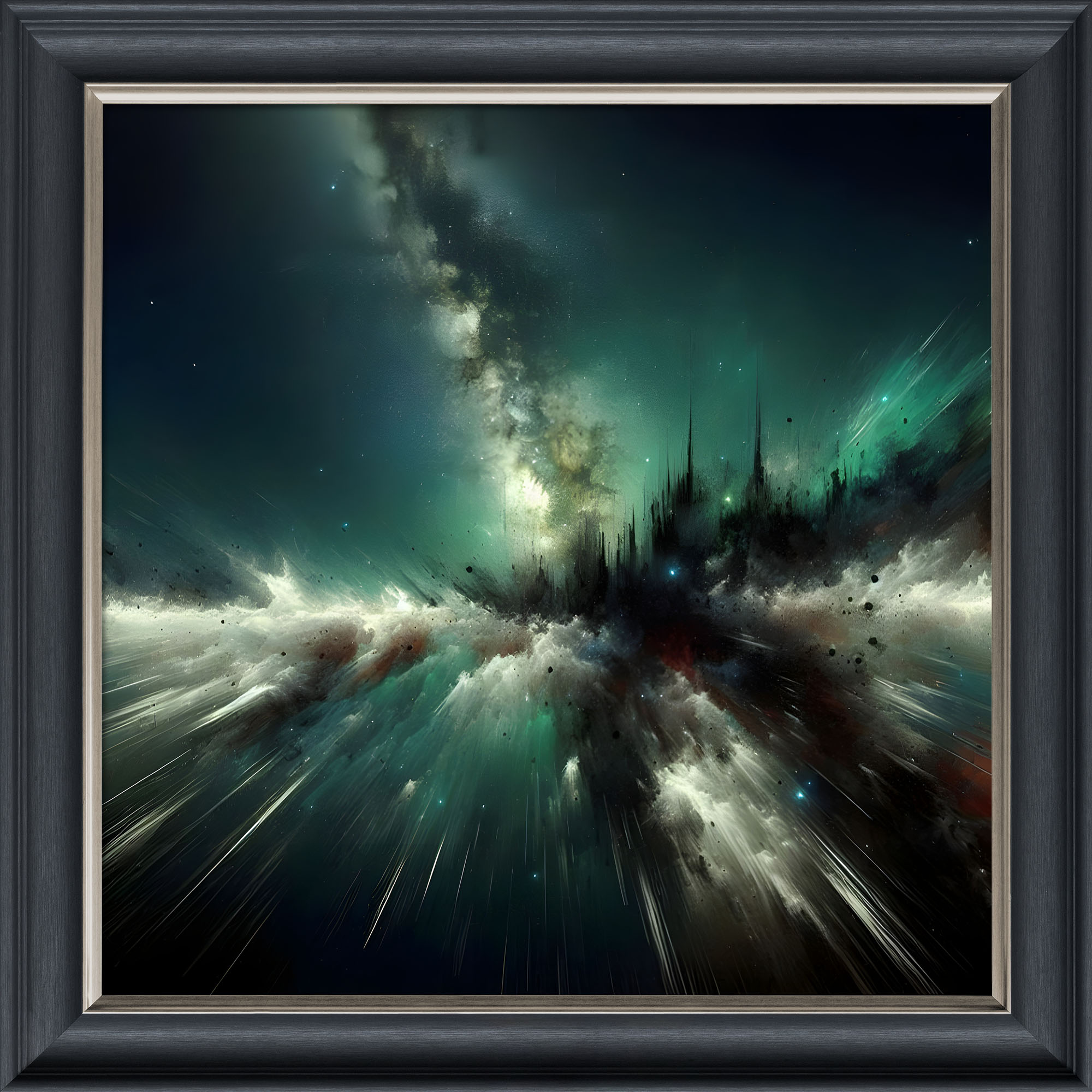 Velvet Illusion Artwork of the Green Spacy picture in an 85 x 85cm or 55 x 55cm dark wood frame effect velvet print.