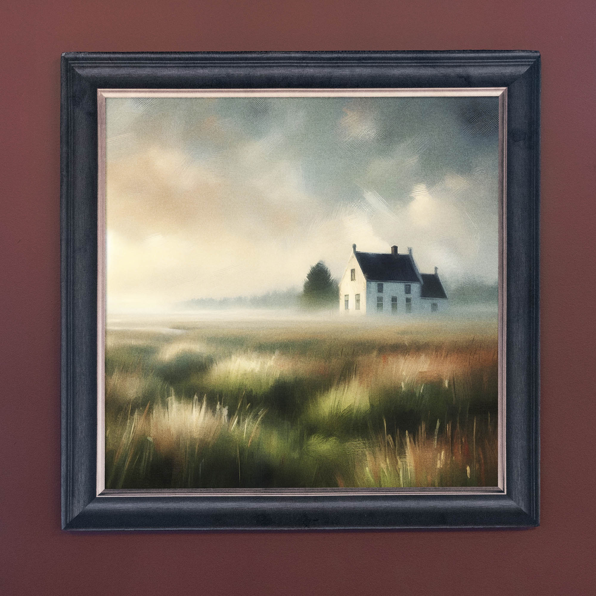 The House in the Field illusion artwork, crafted using high-quality French velvet, where the frame is cleverly printed as part of the artwork