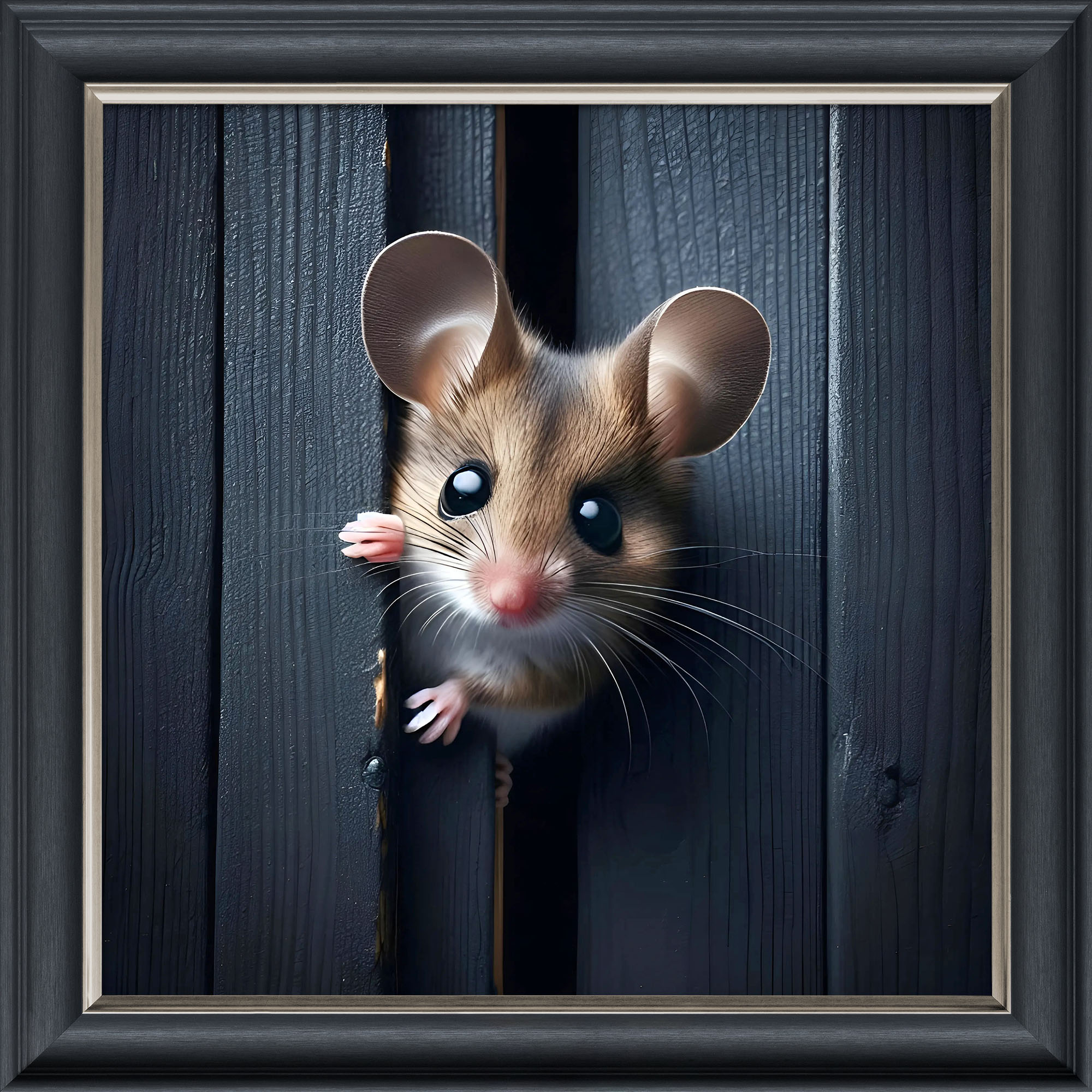 Velvet Illusion Artwork of the Door Mouse picture in an 85 x 85cm or 55 x 55cm dark wood frame effect velvet print.
