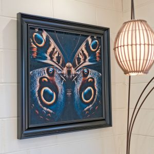 Velvet Print Artwork in an 85 x 85cm or 55 x 55cm size with a printed dark grey wood effect frame.
