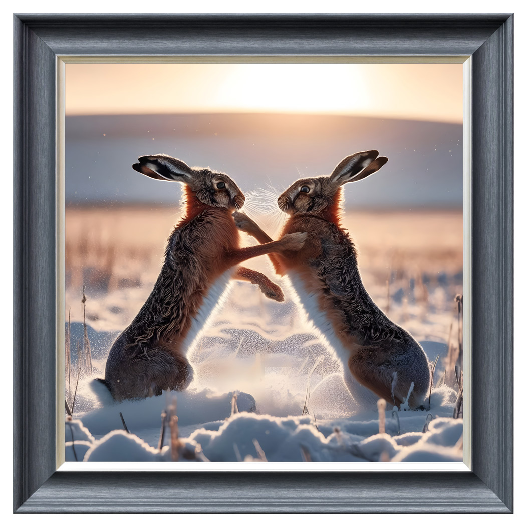 Velvet Print Framed Artwork in an 55 x 55cm dark grey wood effect frame with a gold insert. Choose from a collection of velvet printed framed artwork in my different designs.