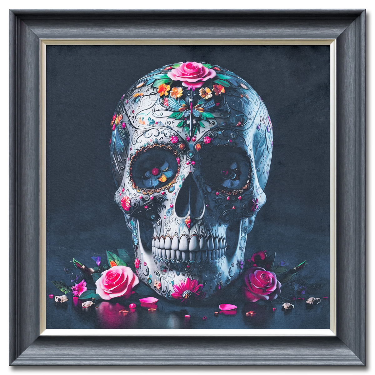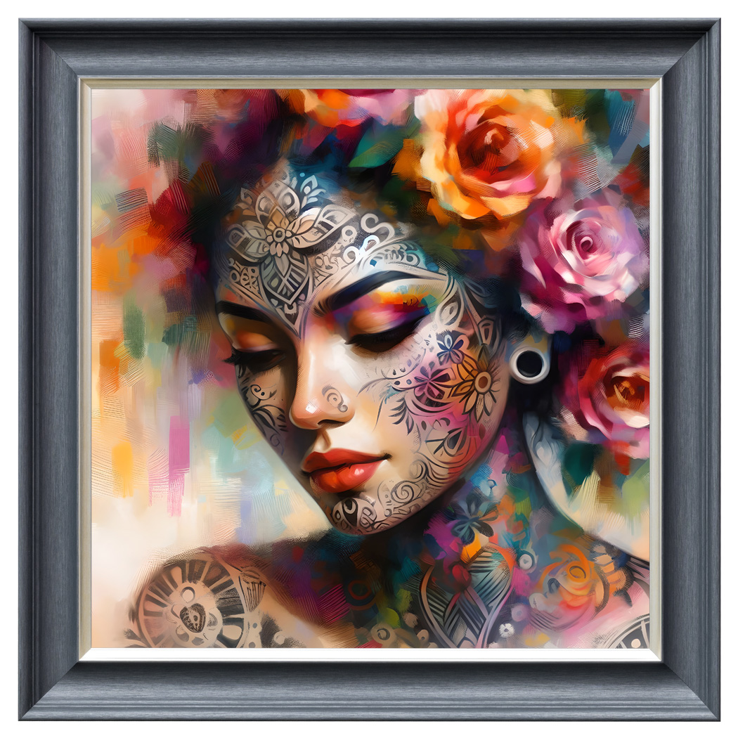 Velvet Print Framed Artwork in an 85 x 85cm dark grey wood effect frame with a gold insert. Choose from a collection of velvet printed framed artwork in my different designs.